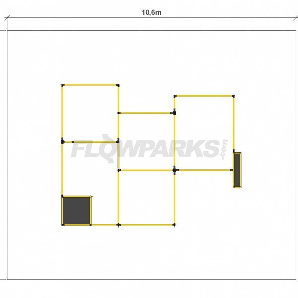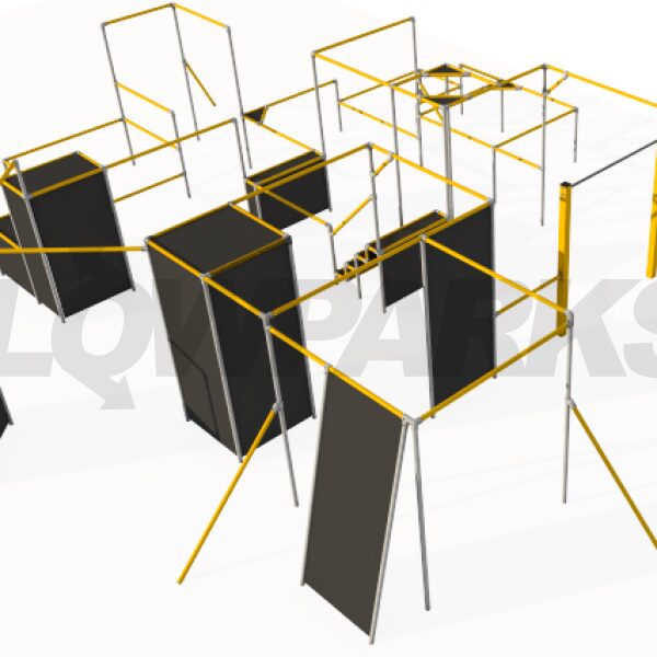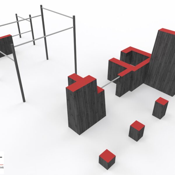 Parkuro konstrukcijų sienų elementai gaminami iš tvarios kryžminio klijavimo medienos (CLT), kad būtų užtikrintas didelis stabilumas ir ilgaamžiškumas, nepaisant nuolat kintančios oro drėgmės. Kad mediena taptų atspari atmosferos poveikiui, naudotas keturių etapų procesas. Viršutinės sienų elementų briaunos padengtos plastiku ir neslystančia guma. Horizontalūs vamzdžiai pagaminti iš nerūdijančio plieno. Konstrukcijos prie žemės tvirtinamos karštai cinkuotais inkarais, įbetonuotais į betoną.
