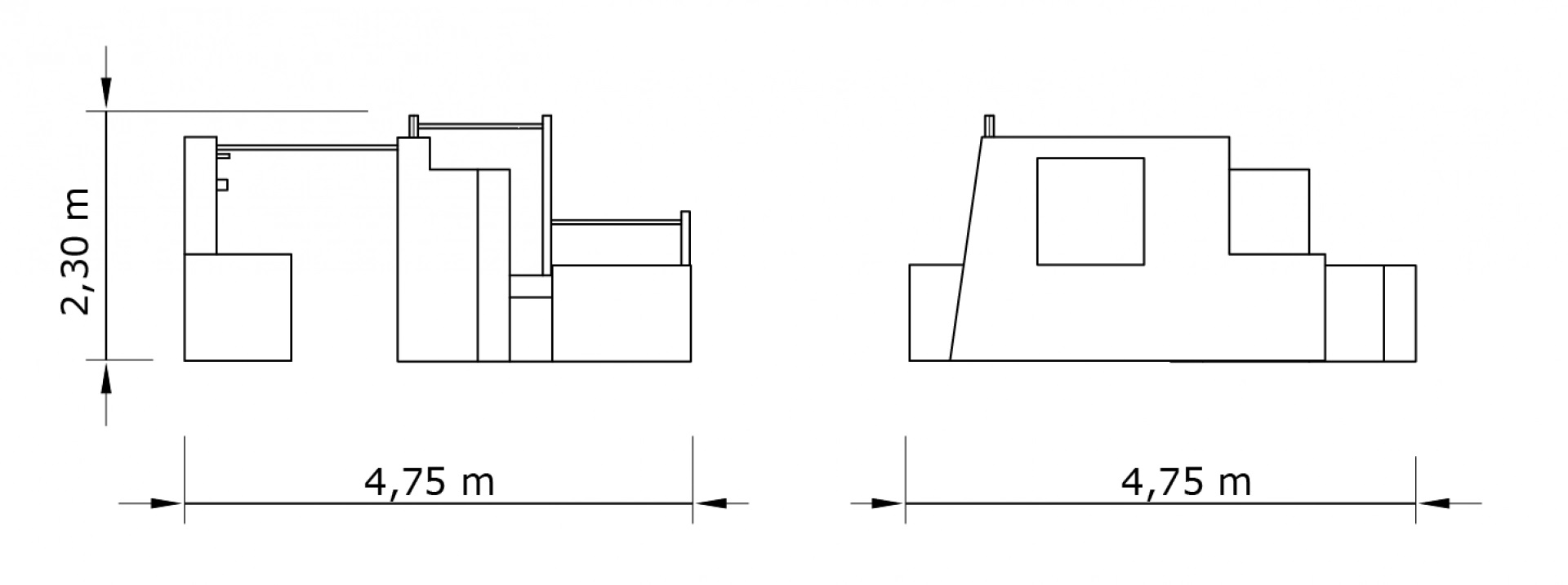 Konstrukcijos ilgis: 4,75 m