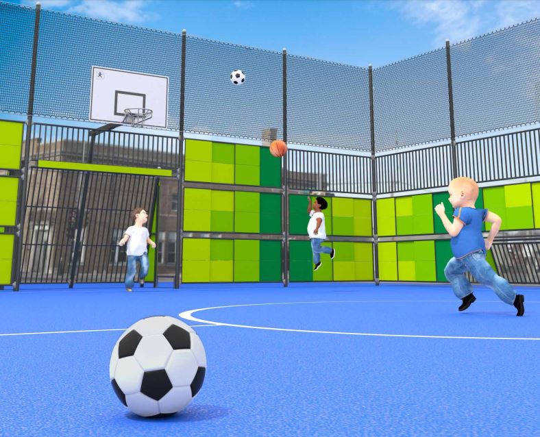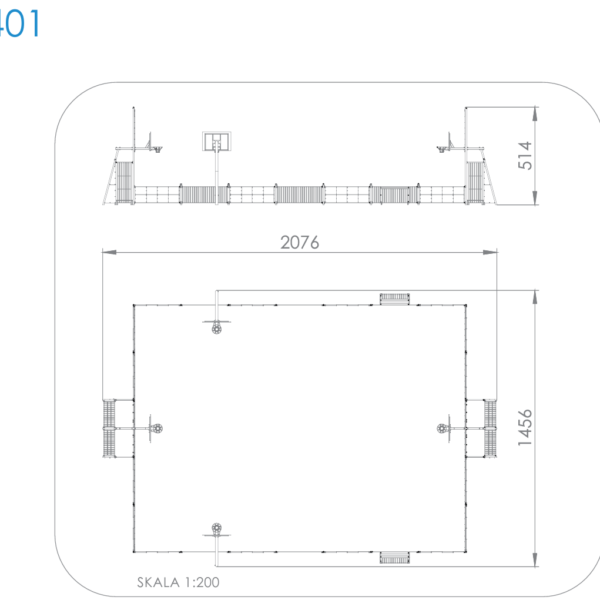 Universāla āra sporta laukums 6403, kurā var spēlēt futbolu, basketbolu, minifutbolu vai mājlopu ragavas. Futbola un basketbola laukums ir aizsargāts ar papildu tīklu, kura augstums ir pat 514cm. Šis laukuma modelis ir piemērots mazākām teritorijām, kur bumbu metiens pāri tīklam apdraud bumbas zaudēšanu vai cita īpašuma bojāšanu.