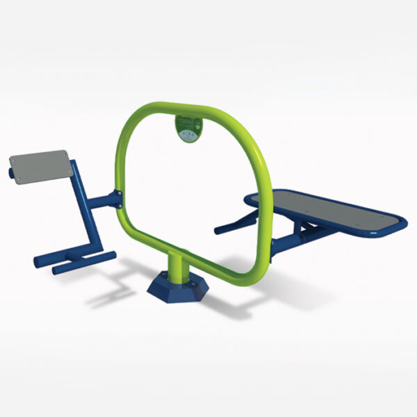 Trinirulis visam ķermenim, bērniem no 1,4 m auguma. Triniruļa rāmja galvenā daļa izgatavota no Ø60 mm tērauda caurules, citas daļas – no Ø32 mm. Konstrukcija auksti cinkota un krāsota. HDPE plastika sēdeklis.