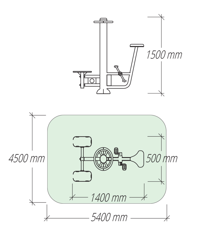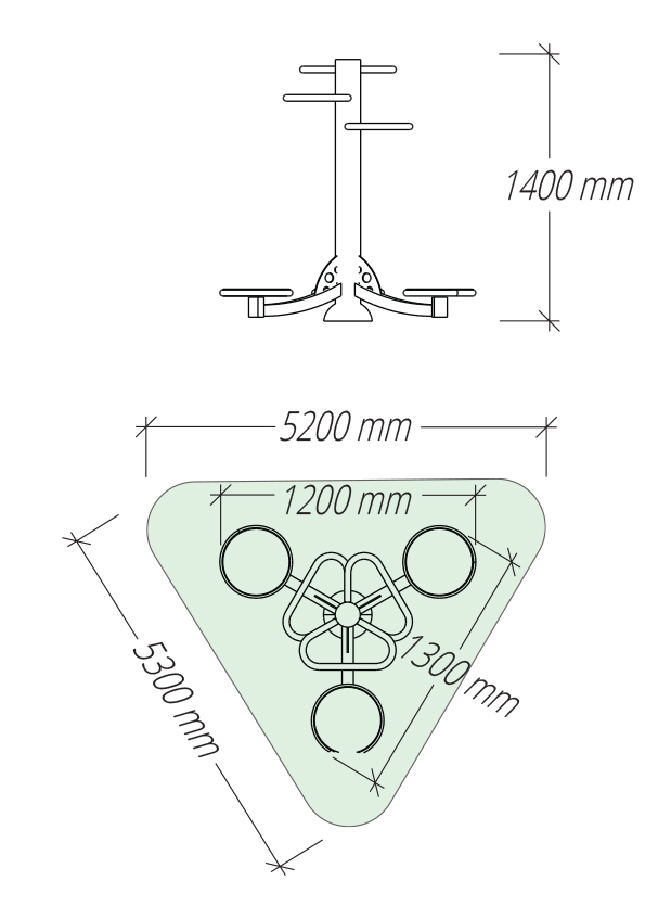 Lauko treniruokliai Go serija. Lauko treniruokliai vaikams ir senjorams. Sertifikuoti pagal LST EN 16630 standartą. Lauko treniruokliai dažomi milteliniu būdu. Gali būti cinkuojami karštuoju būdu.