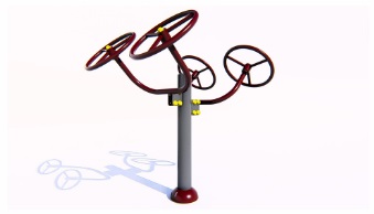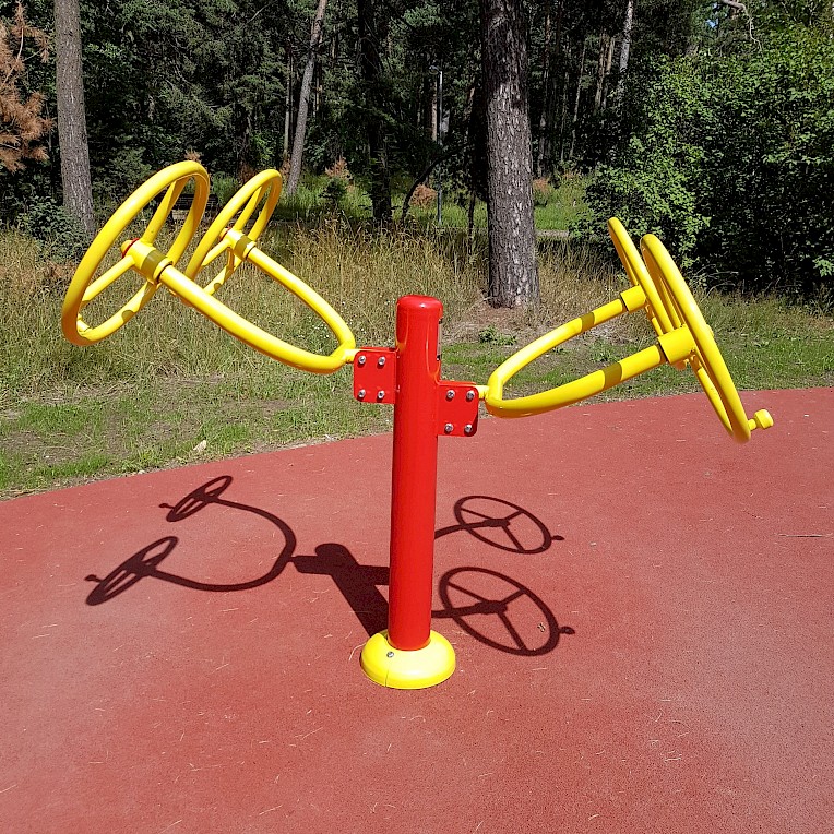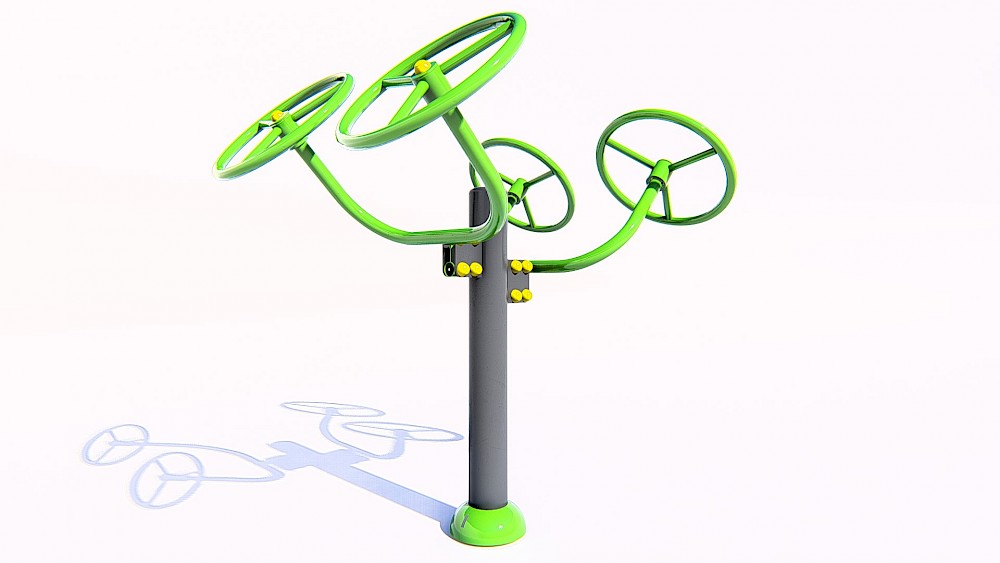 Ražošanā izmantotie materiāli:- Tērauda caurules ar sieniņu biezumu ne mazāk kā 3 mm, apstrādātas ar smilšu strūklu un pārkrāsotas pulvera metodē. Tērauda elementi, kas pārklāti ar polimēru.- Slēgtā tipa gultņi.- Cinkotas savienojuma detaļas.- Skrūves slēptas ar plastmasas vāciņiem.