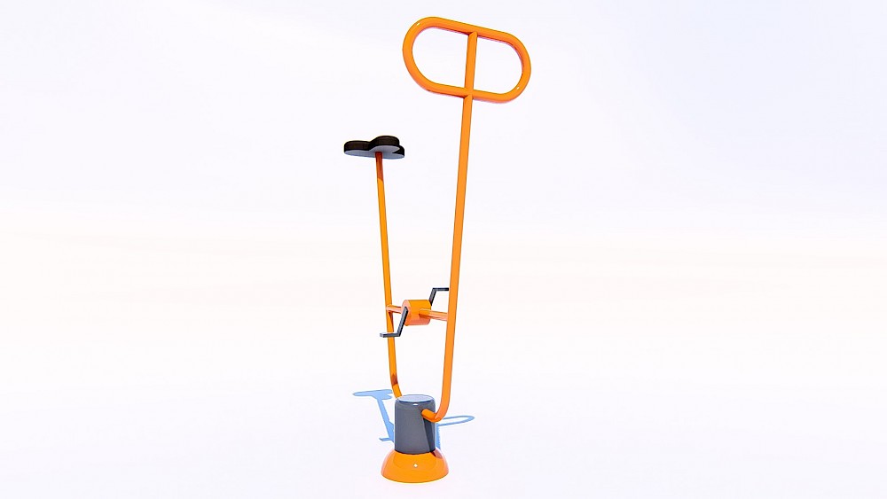 Ražošanā izmantotie materiāli:- Tērauda caurules ar sienu biezumu ne mazāk kā 3 mm, apstrādātas ar smilšu strūklu apstrādi un pūderkrāsātas. Tērauda elementi, pārklāti ar polimēru. – Tērauda profili, apstrādāti ar smilšu strūklu apstrādi un pūderkrāsāti.- Slēgta tipa gultņi.- Cinkoti savienojuma elementi.- Skrūves paslēptas ar plastmasas vāciņiem.