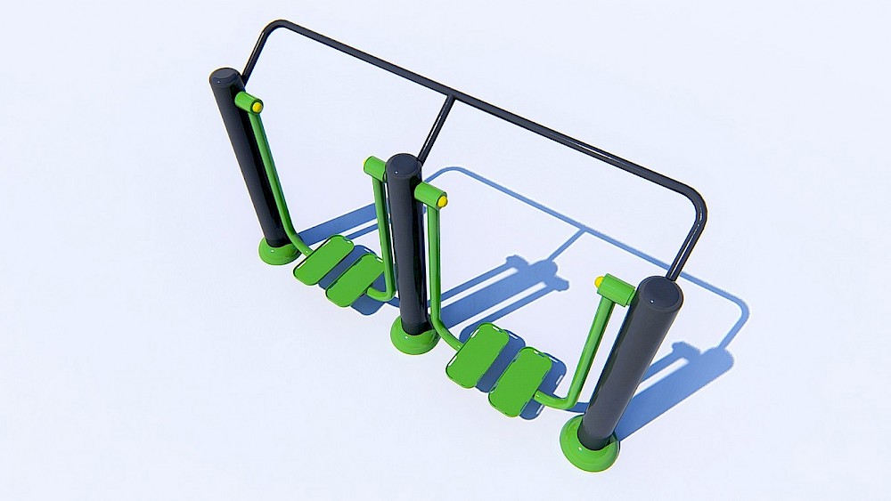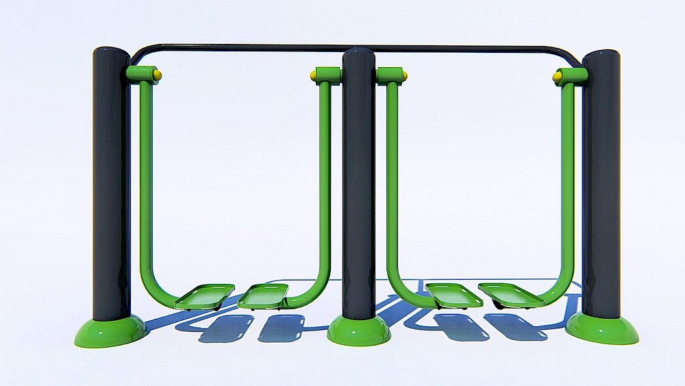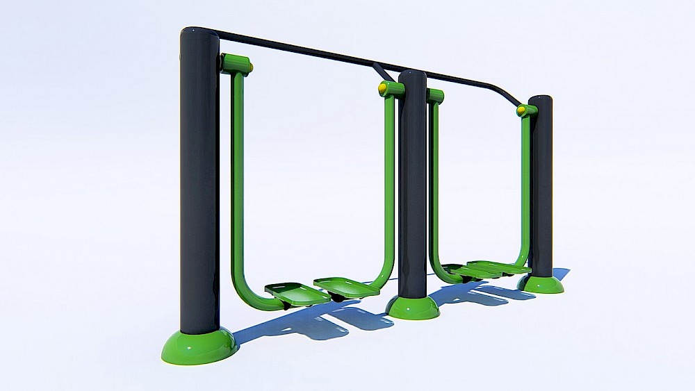 Ražošanā izmantotie materiāli:- Tērauda caurules, kuru sieniņu biezums ne mazāks par 3 mm, apstrādātas ar smilšu strūklu un krāsotas ar pulvera metodi. Tērauda elementi, pārklāti ar polimēru.- Slēgta tipa gultņi.- Cinkoti savienojuma elementi.- Skrūves paslēptas ar plastmasas vāciņiem.