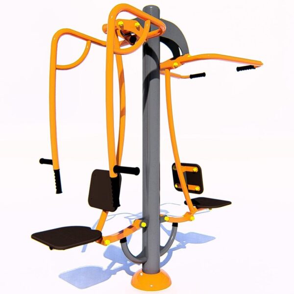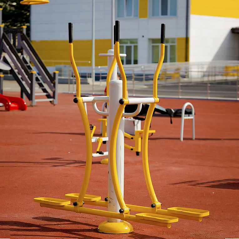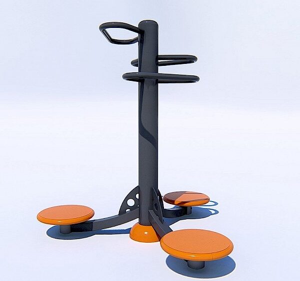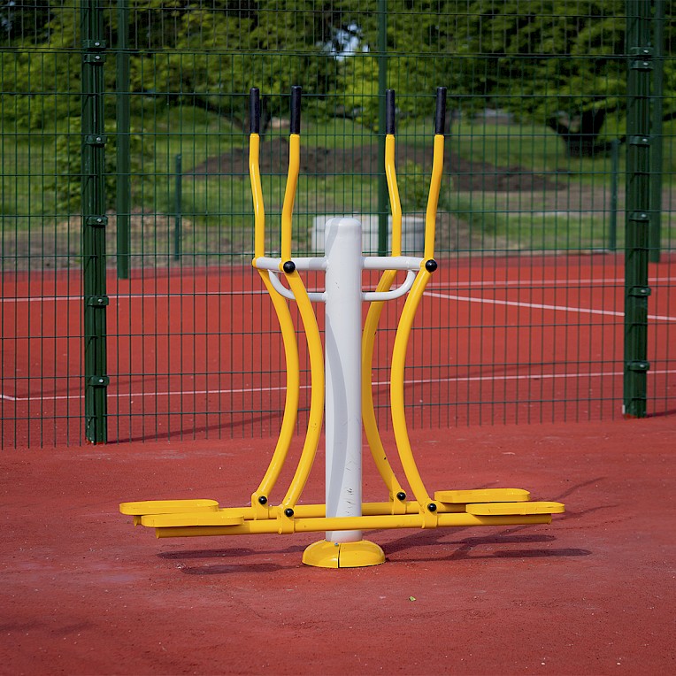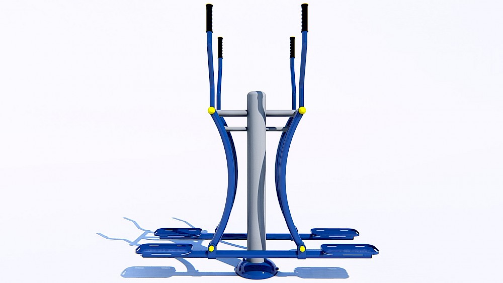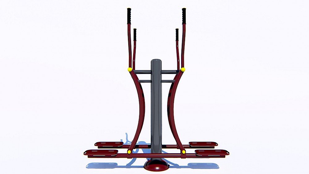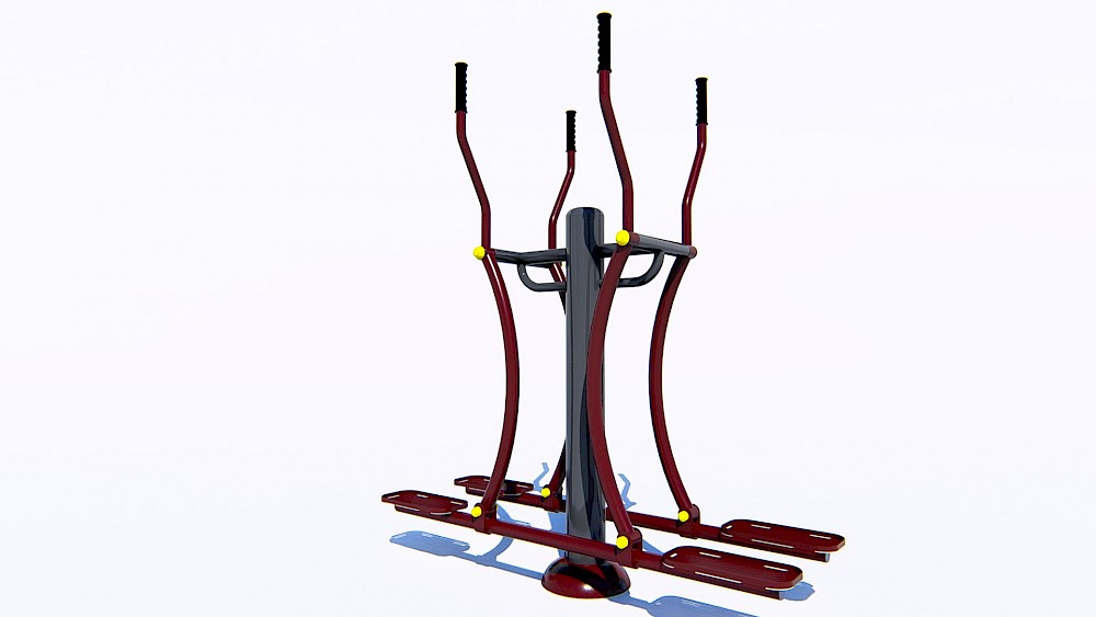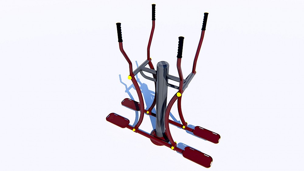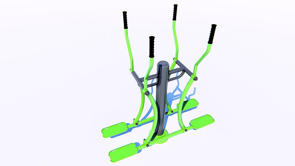 Materiāli, kas izmantoti ražošanā:- Tērauda caurules, kuru sieniņu biezums ne mazāks par 3 mm, apstrādātas ar smilšu pūšanu un pārkrāsotas pulvera krāsā. Tērauda elementi, kas pārklāti ar polimēru.- Tērauda loksnes, apstrādātas ar smilšu pūšanu un pārkrāsotas pulvera krāsā.- Slēgta tipa gultņi.- Cinkoti savienojuma elementi.- Skrūves paslēptas ar plastmasas vāciņiem.- Rokturi gumijas.