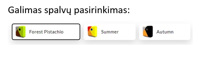 Išimtis: Miško spalvų serijos (pistacijų, fuksijų, raudona) platformos, laiptai ir kitos medinės gaminio detalės padengtos dviejų komponentų karštuoju būdu purškiamu plastiku, apsaugančiu nuo nusidėvėjimo.