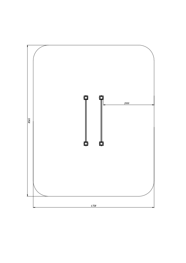 – Iekārtas kājas izgatavoti no 108 mm diametra caurules (sieniņu biezums 4 mm), šķērsvirziena sijas no 48 mm diametra caurules (sieniņu biezums 3 mm)