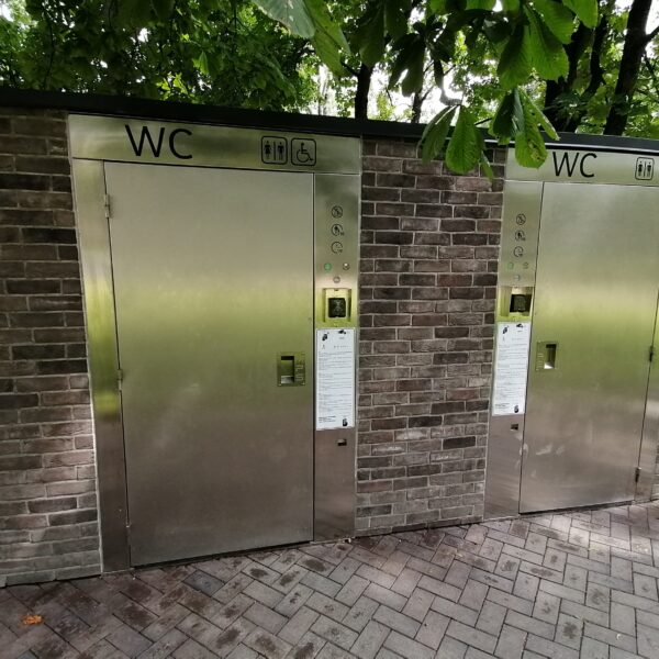 Gelžbetoninis automatinis WC su nerūdijančio plieno apdaila Rygoje. 2023