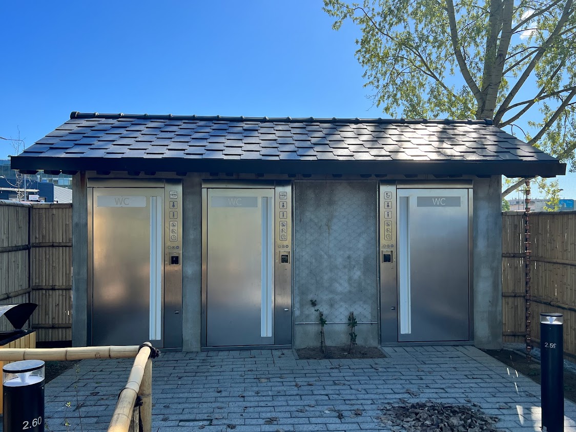 Gelžbetoninis automatinis WC su nerūdijančio plieno apdaila Rygoje. 2023