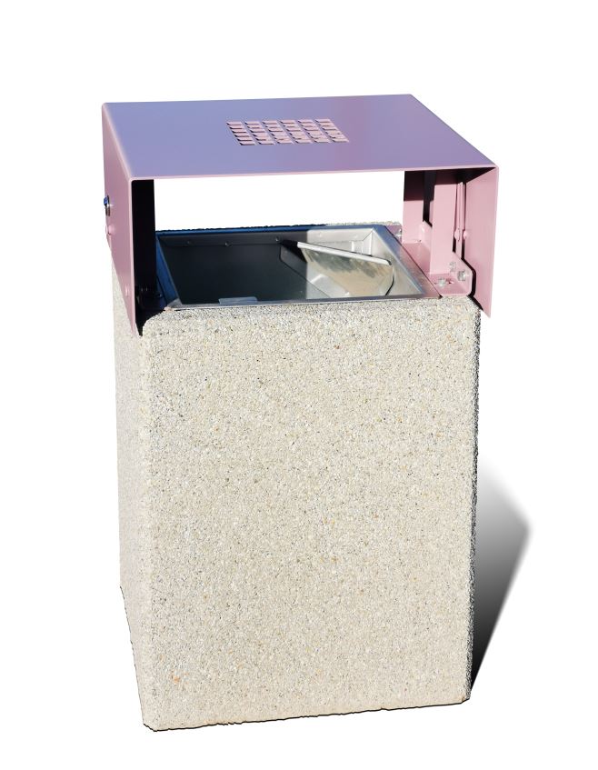 Betonona atkritumu urnada ar jumtīti, cinkotā iekšējā spainī un pelnu paplāti.