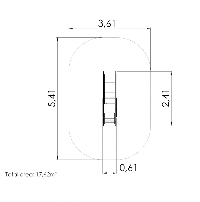 Saugos zonos plotis: 3,61 m