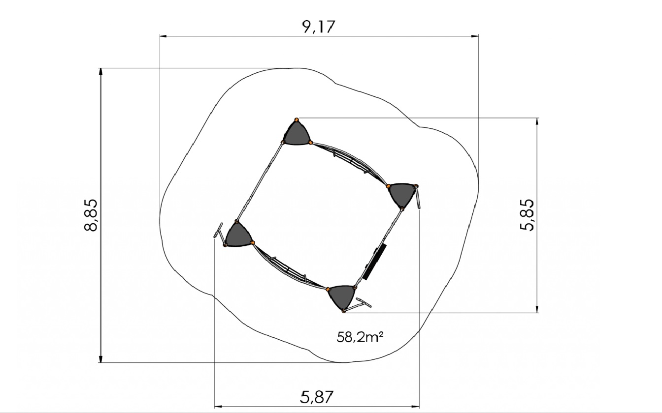 Tinklai ir virvės: Šešių gijų PES danga pintas plienas + presuotas aliuminis, X jungtys ir T jungtys