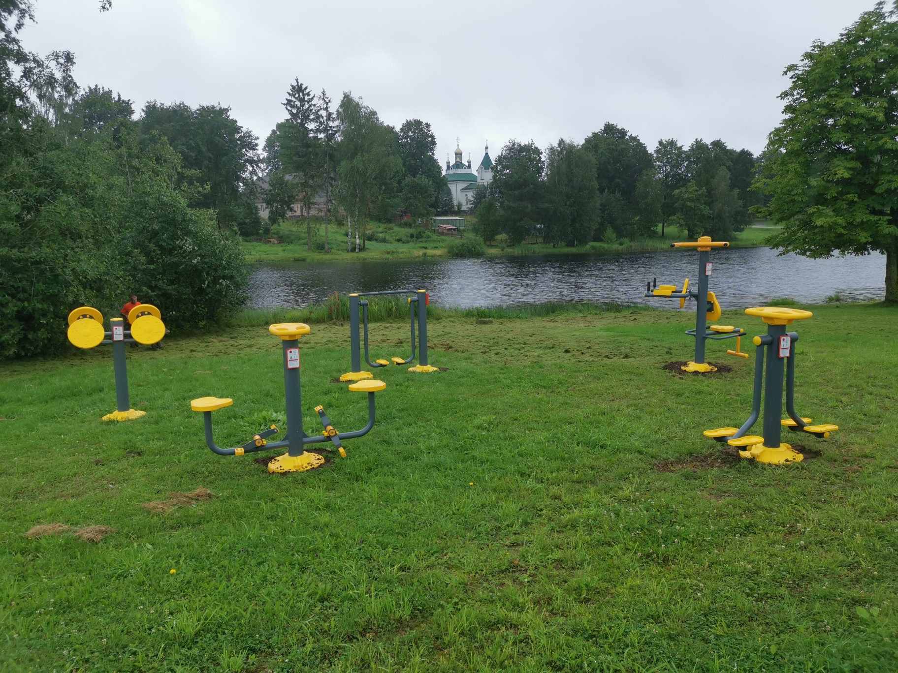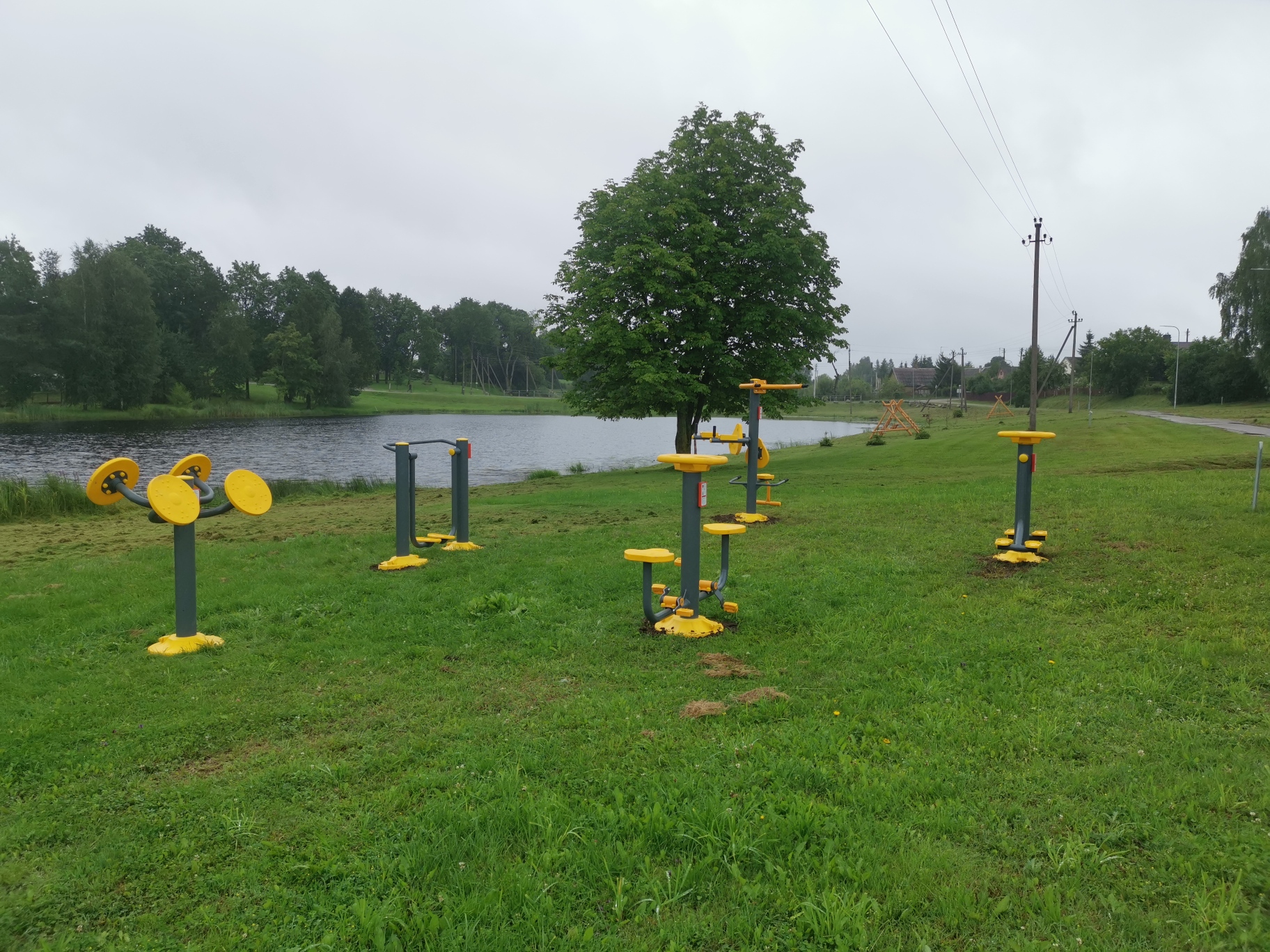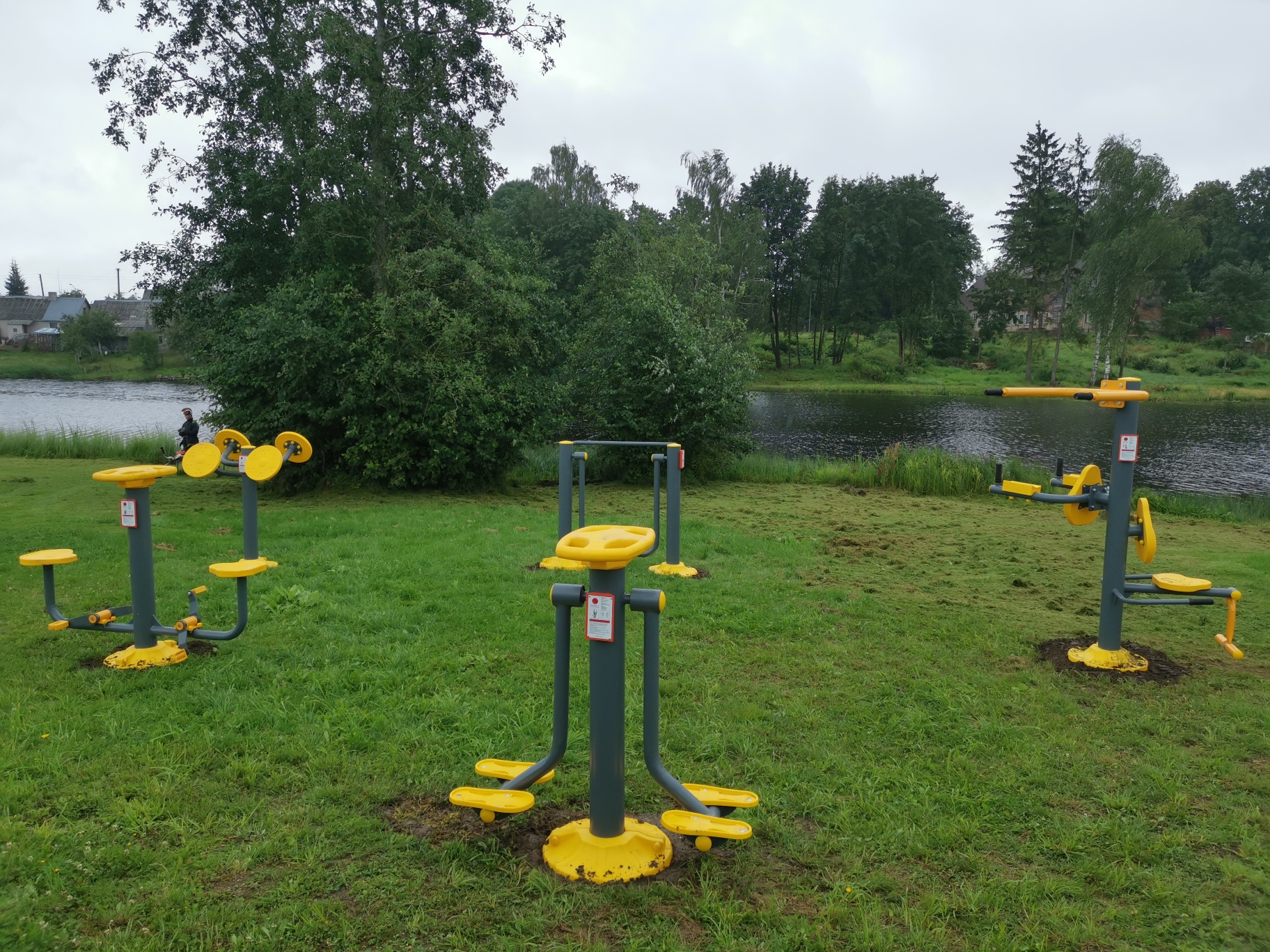 Lauka treniruoklis B24. Kāju treniruoklis ar pakaļroku atbalstiem, aizstāj tupošanu un noņem slodzi no juosmens mugurkaula. Galvenais pamatne izgatavots no 139mm diametra tērauda caurules, kuru sienu biezums 3mm. Ar galveno korpusu savienotas kustīgas daļas izgatavots no 60mm diametra, 3mm biezas speciāli saliektas vienkāršas tērauda caurules. Gultņi ir viena skaņošanas bremze. Lai aizsargātu kustīgas daļas no sadursmes ar korpusu, saskares vietā piestiprināta 60mm diametra un 40mm augstuma gumijas amortizators. Roku un kāju atbalsti no 33mm diametra, 3mm biezas caurules. Sēdekļi un apdares detaļas no polietilēna plastmasas. Izmēri: 1940x850x1570h mm. Izstrādājums atbilst EN1176-1 un EN16630.