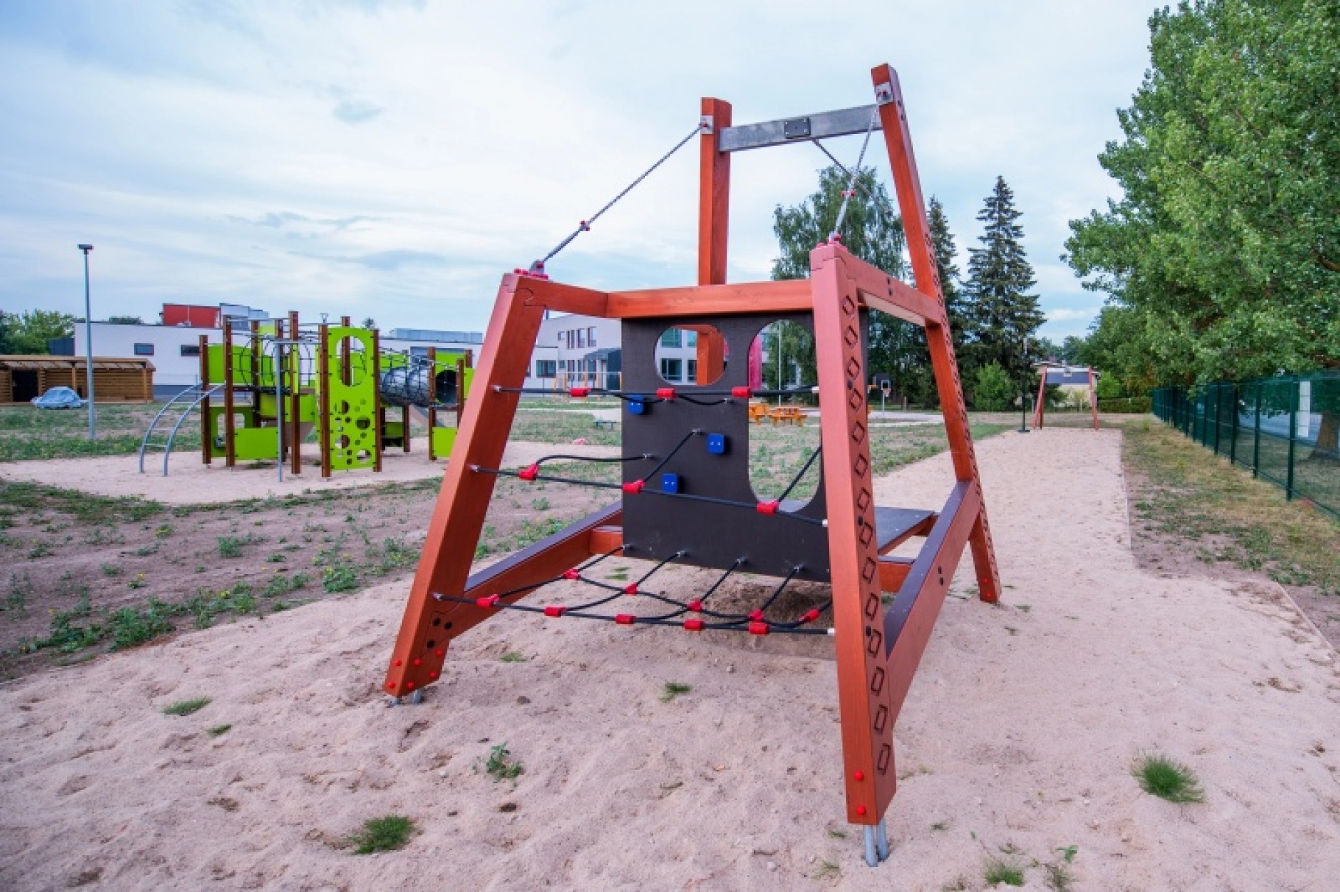 Unikalus AMAZON atrakcionas pagamintas iš patvarios laminuotos medienos, jam suteikti atitinkami kokybės sertifikatai. Skirtingais ornamentais puošti laminuotos medienos stulpai sujungti naujovišku įleidžiamojo sujungimo būdu. Stulpelių skerspjūvis yra 100 mm x 236 mm, o tarp jų esantys tinklai pagaminti iš itin patvaraus 16 mm plieninio lyno, skirto laipiojimui, padengto poliesteriu ir turinčio plastikines jungtis. Šis funkcionalus laipiojimo rėmas siūlo įvairias laipiojimo, balansavimo ir ropojimo galimybes. Jis sujungtas su didelio adrenalino vaidmenimis pasižyminčia Tarzano tako zipline linija, kuria vaikai gali sėdėti ir sklandyti nuo vieno elemento prie kito. Laminuotos ir dažytos medienos stulpai įbetonuoti į žemę naudojant karštai cinkuoto metalo jungiamąsias detales.