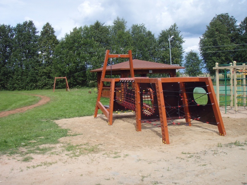 Unikalus AMAZON atrakcionas pagamintas iš patvarios laminuotos medienos, jam suteikti atitinkami kokybės sertifikatai. Skirtingais ornamentais puošti laminuotos medienos stulpai sujungti naujovišku įleidžiamojo sujungimo būdu. Stulpelių skerspjūvis yra 100 mm x 236 mm, o tarp jų esantys tinklai pagaminti iš itin patvaraus 16 mm plieninio lyno, skirto laipiojimui, padengto poliesteriu ir turinčio plastikines jungtis. Laipiojimo sienelė su laipiojimo uolomis pagaminta iš vandeniui atsparios beržo faneros. Šis funkcionalus laipiojimo rėmas siūlo įvairias laipiojimo, balansavimo ir ropojimo galimybes. Jame įrengta adrenalino vaidmenis sukelianti Tarzano tako zipline linija, kurioje vaikai gali sėdėti ir sklandyti nuo vieno elemento prie kito. Laminuotos ir dažytos medienos stulpai įbetonuoti į žemę naudojant karštai cinkuoto metalo jungiamąsias detales.