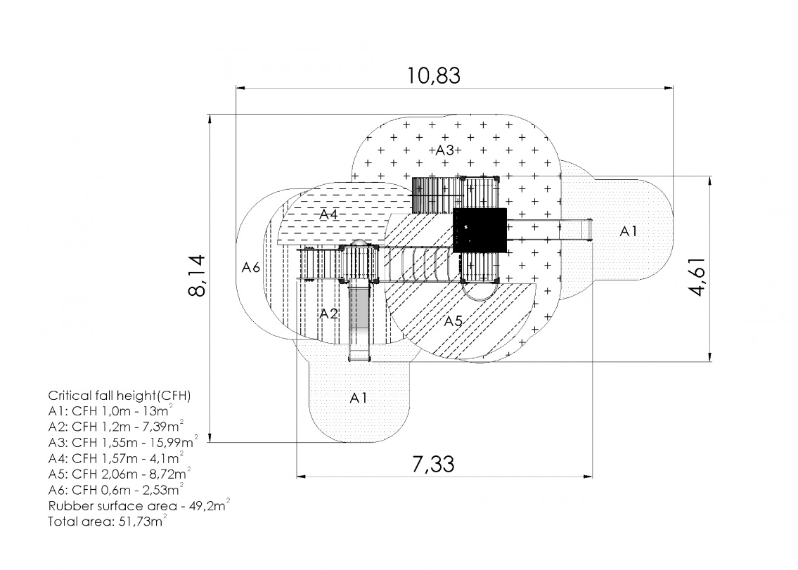 Platformos: 3vnt. 1,55 m; 1vnt. 1,2 m ir 3vnt. 0,25 m aukščio. Laminuota mediena