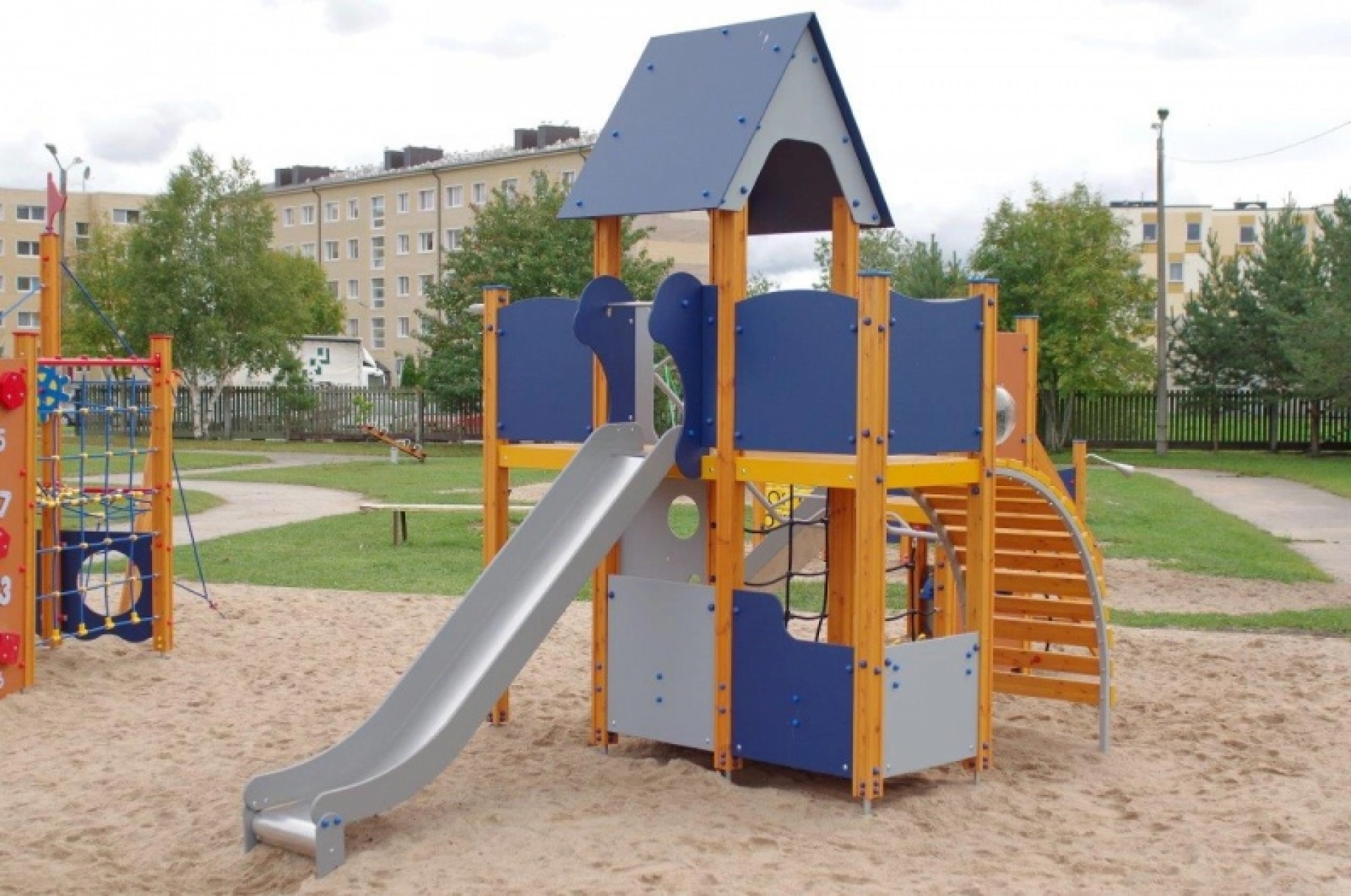 Čiuožykla: 2vnt. 1,55 m ir 1,2 m aukščio. Nerūdijančio plieno, HDPE plastiko šonai