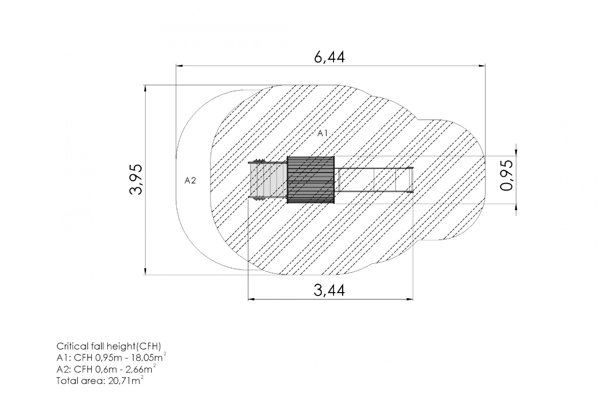 Čiuožykla: 1 vnt. 0,95 m aukščio. Nerūdijančio plieno, HDPE plastiko šonai