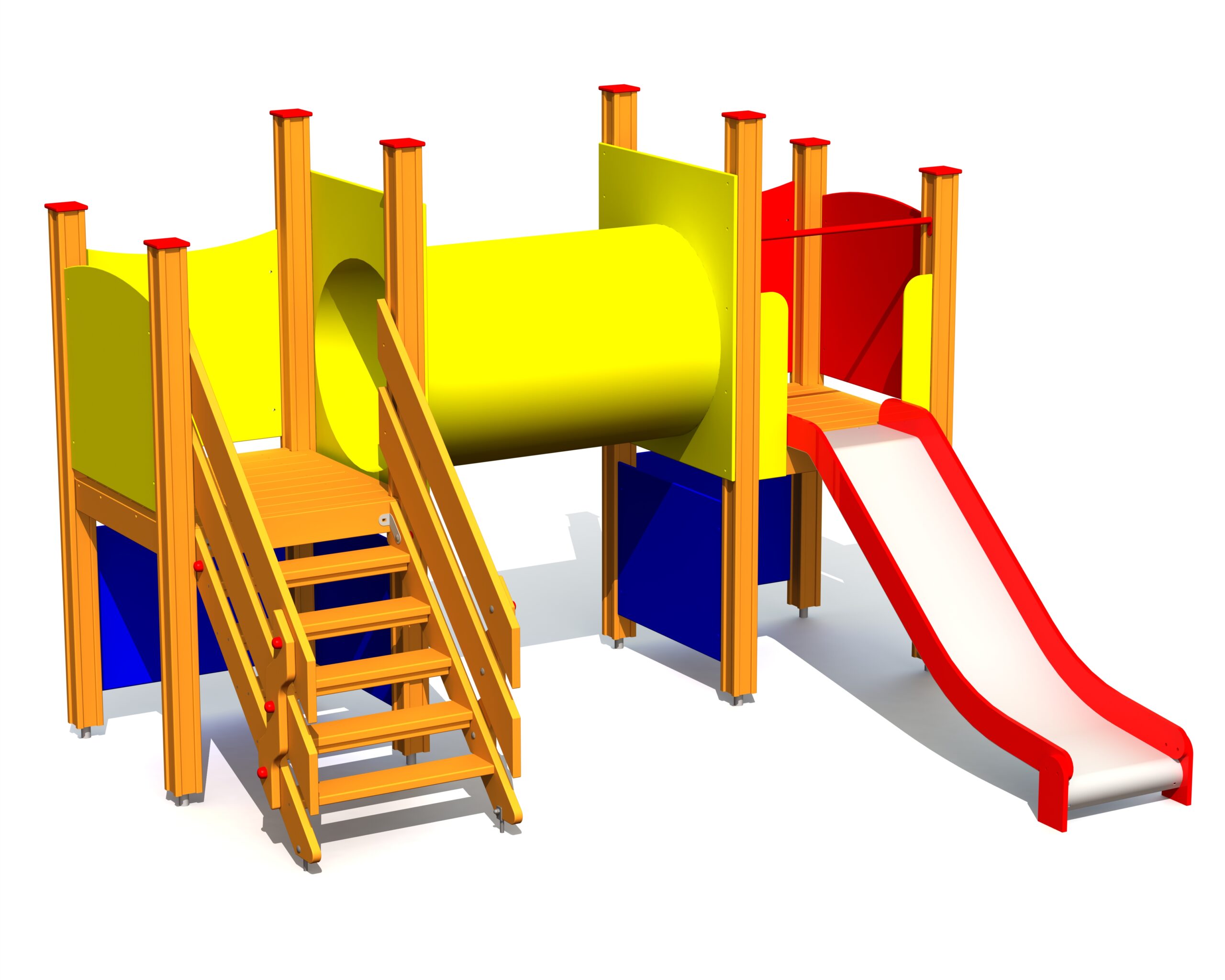 Vaikų žaidimų centras su dviem platformomis, tuneliu ir veiklos skydeliais. Į platformą veda laiptai su turėklais, o į priekį – šliaužimo tunelis. Šoninės žaidimų centro plokštės gali būti perjungiamos įvairioms veikloms sienoms arba teminėms spausdintoms plokštėms (gyvūnams, paukščiams, žuvims, medžiams, uogoms ir kt.). Plokščių dizainas bus derinamas su klientu užsakymo metu.