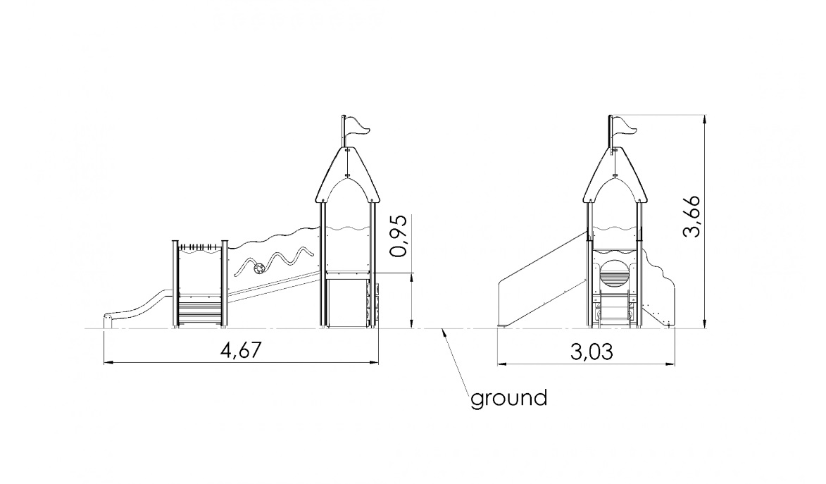 Čiuožykla: 1 vnt. 0,6 m aukščio. Nerūdijančio plieno, HDPE plastiko šonai