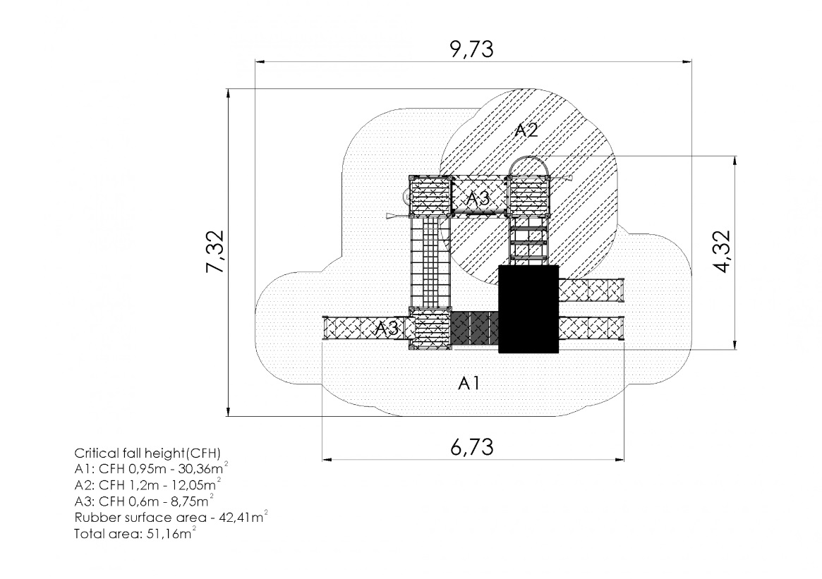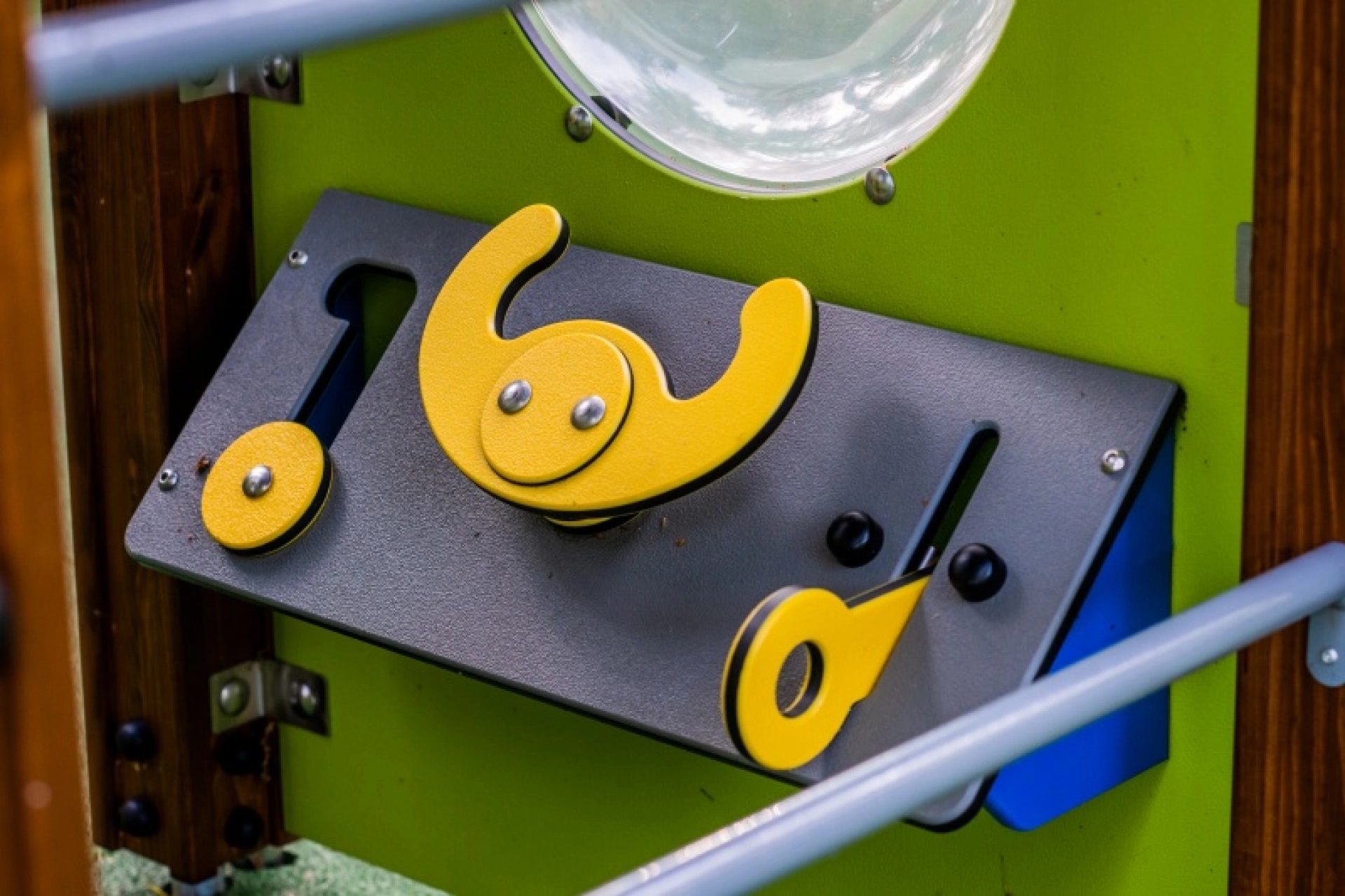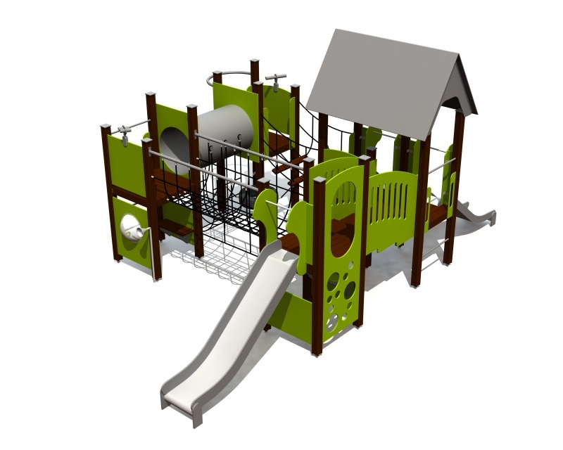 Šiame žaidimų centre su penkiomis platformomis rasite įvairių elementų, skirtų įvairiai veiklai. Į centrą galima patekti kopėčiomis arba laipiojimo sienele su skylėmis. Kabančiu tiltu su judančiais laipteliais, tinklo tiltu, šliaužimo tuneliu ir nuožulniu tiltu galima judėti tarp platformų. Trys žaidimų centre esantys nusileidimo kalneliai ir ugniagesių stulpas siūlo patogų kelią žemyn. Vaidmenų žaidimams centre yra kapitono vairas, žiūronai, iliuminatorius, kalbėjimo vamzdžiai, sėdynė atsigulti, laikrodžio mokymosi pultas ir žaidimas “Tic-Tac-Toe”. Po dviem platformomis paslėpti du smagūs žaidimų kampeliai su suoliukais, kuriuose galima įrengti virtuvės kampelį arba automobilio prietaisų skydelio elementus. Žaidimų centro šoninius skydelius galima keisti įvairiomis veiklų sienelėmis arba teminiais spausdintiniais skydeliais (gyvūnai, paukščiai, žuvys, medžiai, uogos ir t. t.). Skydų dizainas bus galutinai suderintas su klientu užsakymo metu.