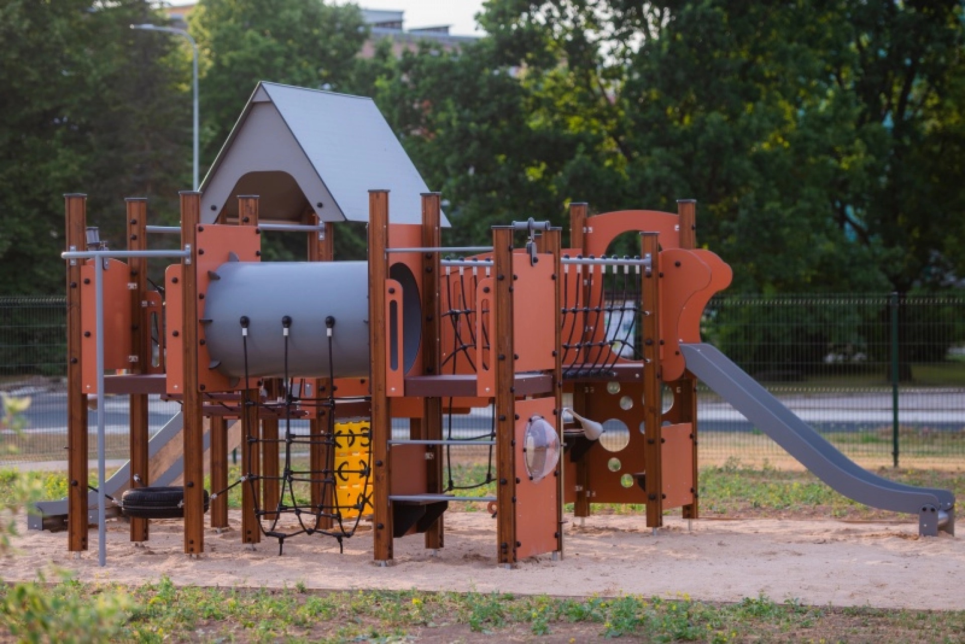 Čiuožykla: 2 vnt. 0,95 m ir 1vnt. 1,2 m aukščio. Nerūdijančio plieno, HDPE plastiko šonai