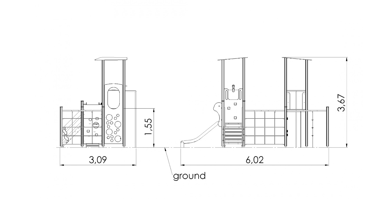 Čiuožykla: 1 vnt. 0,95 m aukščio. Nerūdijančio plieno, HDPE plastiko šonai
