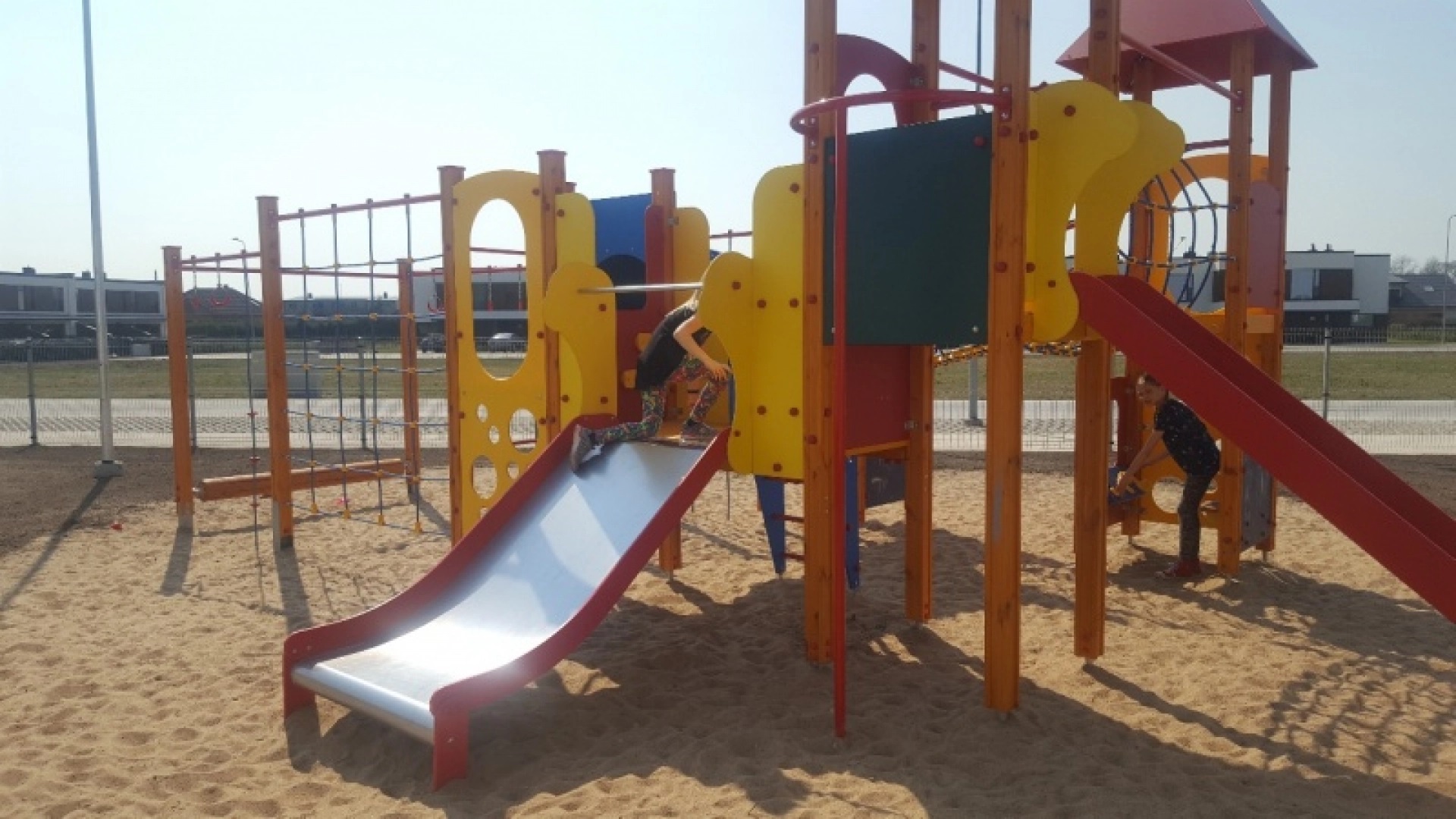 Čiuožykla: 2 vnt. 1,55 m ir 0,95 m aukščio. Nerūdijančio plieno, HDPE plastiko šonai