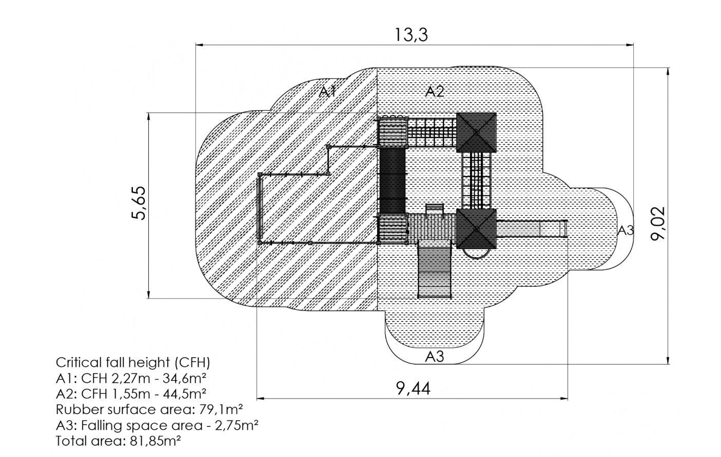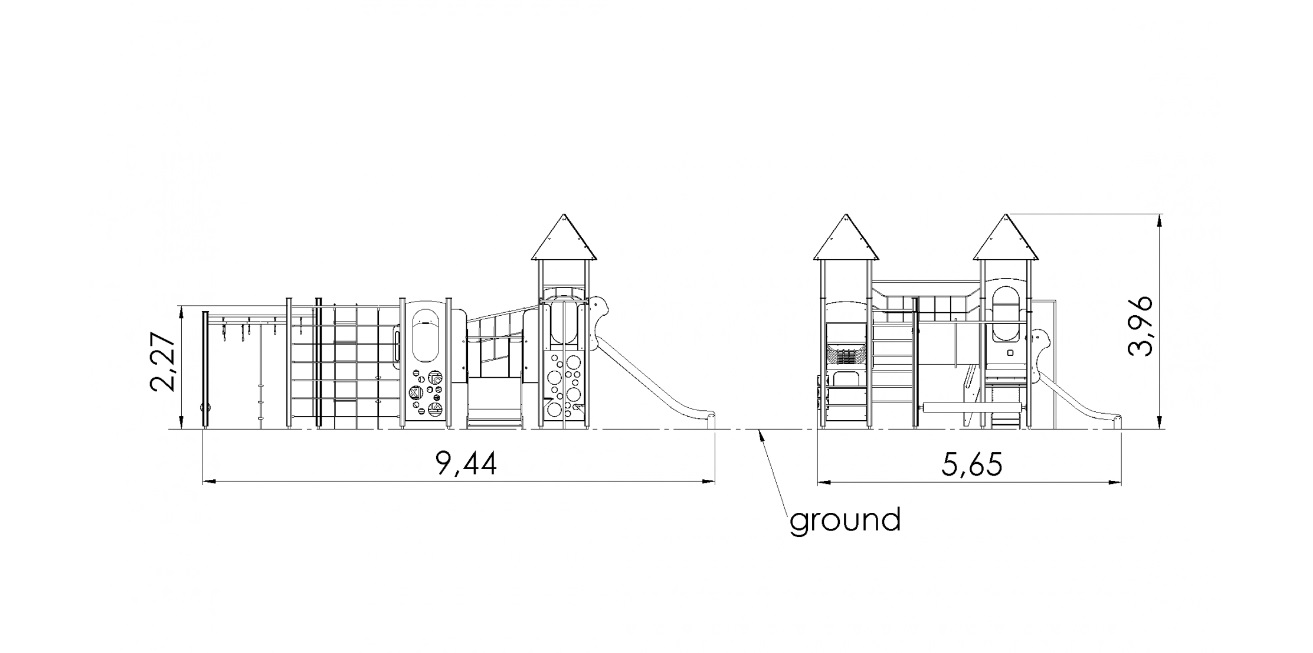 Šiame patraukliame ir universaliame laipiojimo ir žaidimų centre yra įvairių elementų, skirtų įvairiems užsiėmimams. Į penkias platformas galima patekti kopėčiomis arba laipiojimo sienelėmis su skylėmis. Platformas jungia tinklo tiltas, šliaužimo tunelis ir nuožulnus tiltas su turėklais. Čiuožykla ir ugniagesių stulpas suteikia puikias galimybes slysti. Šalia esantis laipiojimo kompleksas, kurį sudaro tinklo siena, laipiojimo virvės, beždžionių barai su rankenomis, paslanki balansavimo sija ir vertikalios kopėčios, padeda lavinti laipiojimo ir vikrumo įgūdžius. Vaidmeniniams žaidimams centre įrengtas “Tic-Tac-Toe” žaidimas ir smagus žaidimų kampelis su suolu, kuriame galima įrengti virtuvės arba automobilio prietaisų skydelio elementus. Žaidimų centro šoninius skydelius galima keisti įvairiomis veiklos sienelėmis arba teminiais spausdintiniais skydeliais (gyvūnai, paukščiai, žuvys, medžiai, uogos ir t. t.). Skydų dizainas bus galutinai suderintas su klientu užsakymo metu.