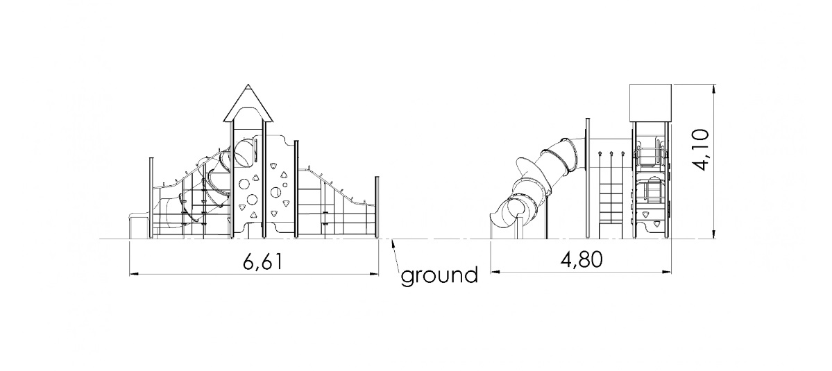 Čiuožykla: 1 vnt. 1,2 m aukščio. Nerūdijančio plieno, HDPE plastiko šonai
