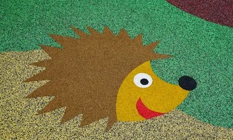 Grafika pagaminta iš spalvotų EPDM granulių, kurios atitinka EN 71 standartą.