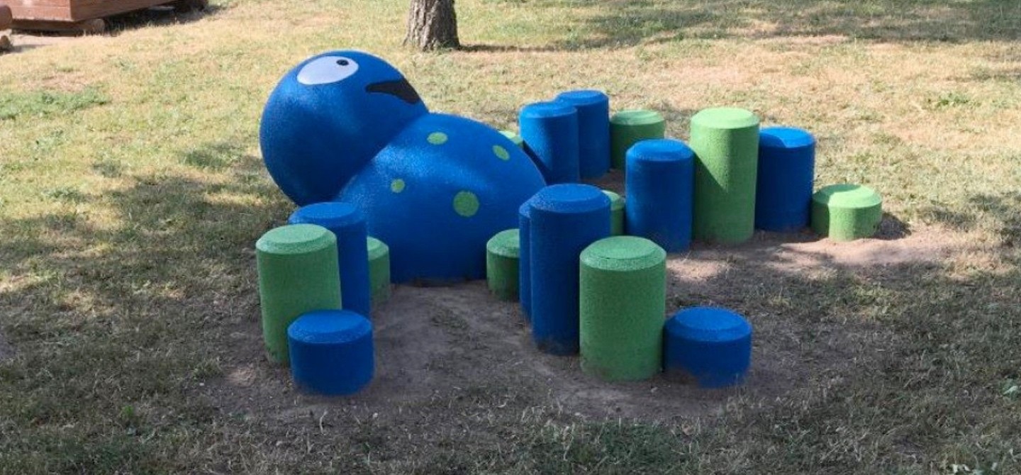 Medžiagos: SBR+EPDM gumos granulės, alifatinis PU rišiklis, vandalizmui atsparus berglass apvalkalas, metalinės dalys