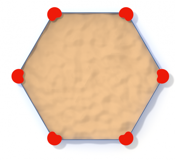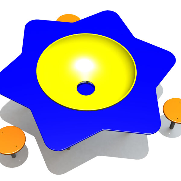 Smėlio dėžėje yra 1 spalvinga ovali ir 3 apvalios kampinės plokštės, kurios suteikia vaikams papildomą vietą įvairiems smėlio dirbiniams arba žaislams laikyti. Smėlis gali būti pilamas atgal į smėlio dėžę per skylę ovalioje plokštėje. Šiame rinkinyje yra įdėklas, kuris neleidžia smėliui susimaišyti su dirvožemiu ir neleidžia augti piktžolėms. Galima užsisakyti specialų tinklinį tentą, kad katės nesilankytų smėlio dėžėje bei neįkristų kitos šiukšlės. Smėlio dėžė pristatoma be smėlio.