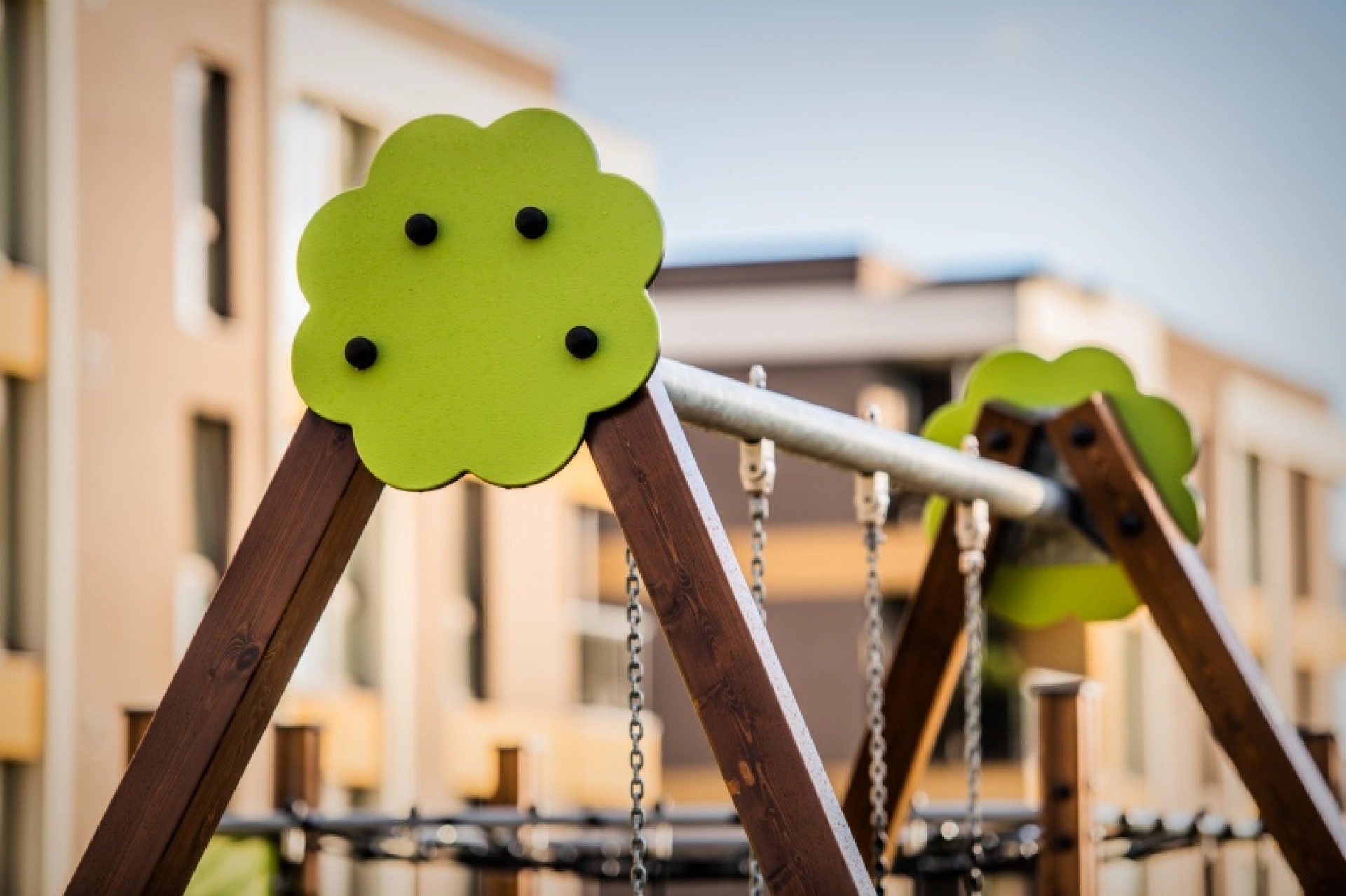 Vienvietės sūpynės gali būti komplektuojamos su lopšinėmis arba įprastomis sūpynių sėdynėmis. Galima įrengti padangų sėdynes arba patogias gandro lizdo sėdynes. Plieniniai tvirtinimo elementai.