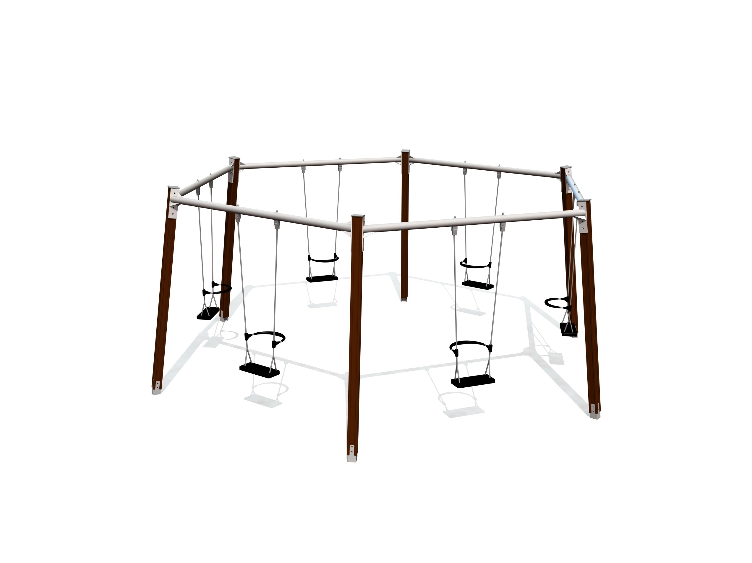 Šiomis tvirtomis 6 vietų rato sūpynėmis vienu metu gali naudotis šeši vaikai, kurie supasi atsisukę į išorę. Sūpynės su specialiais atlošais užtikrina tinkamą naudojimą. Įprastas sėdynes galima pakeisti lopšio sėdynėmis.