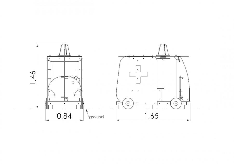 Žaidimų automobilis yra skirtas mažiems vaikams ir vienu metu talpina 4-6 žaidėjus. Žaidimo automobilyje vaikai gali tapti greitosios pagalbos vairuotoju, gydytoju arba pacientu. Galinėje dalyje esantis suoliukas taip pat leidžia pacientui atsigulti. Vairuotojo kabinoje yra besisukantis vairas ir judanti pavarų perjungimo sistema.