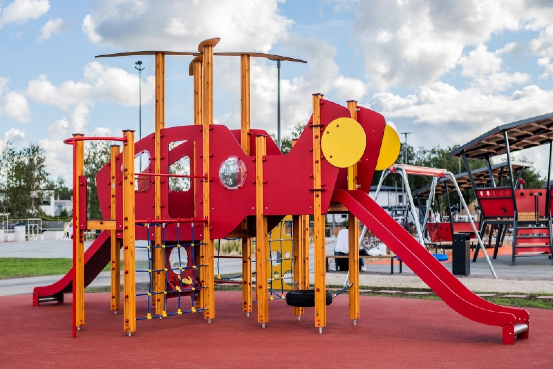 Čiuožykla: 2 vnt. 1,2 m ir 1,55 m aukščio. Nerūdijančio plieno, HDPE plastiko šonai
