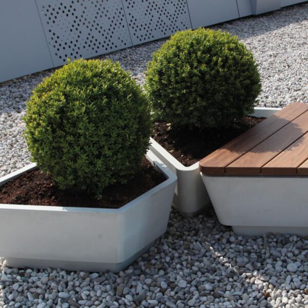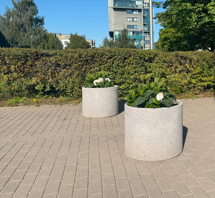 Betoninė gėlinė FB010 su akmenukų apdaila.