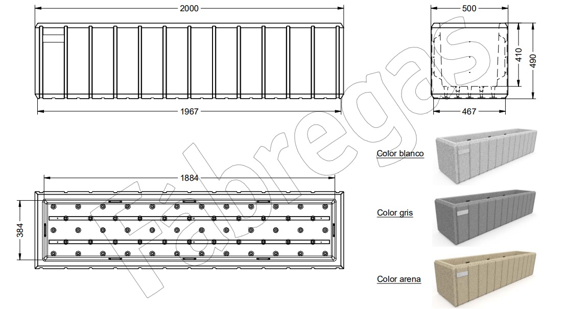 Planter izgatavots no augstas kvalitātes polietilena. Ir iespēja izvēlēties no trim krāsām: melnas, pelēkas un smilsu.