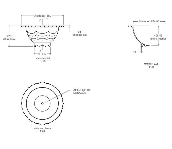 Izmēri: Ø 880 x 428 h mm