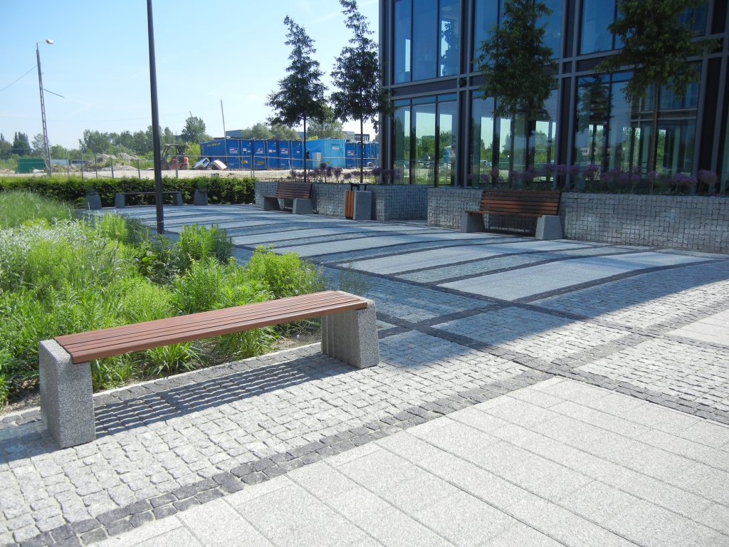 Betonisks āra sols 163 ar dabīga granīta šķembām. Koks: 4 cm bieza melnā apse, impregnēta un pārklāta ar 2 laku slāņiem. Koka toņi pieejami no piedāvātās krāsu paletītes.