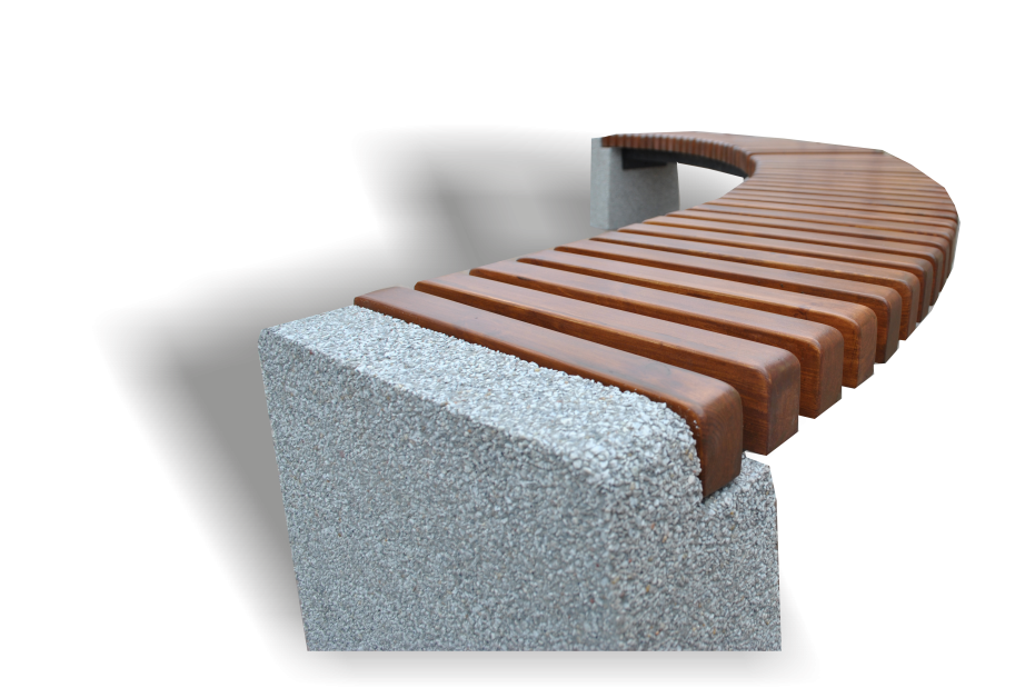 Betonisks āra sols MB165 ar dabīga granīta šķembām. Koks: 4 cm bieza melnā apse, impregnēta un pārklāta ar 2 laku slāņiem. Koka toņi pieejami no piedāvātās krāsu paletītes. 5000 mm apļa apkārtmēram nepieciešami 8 soli.