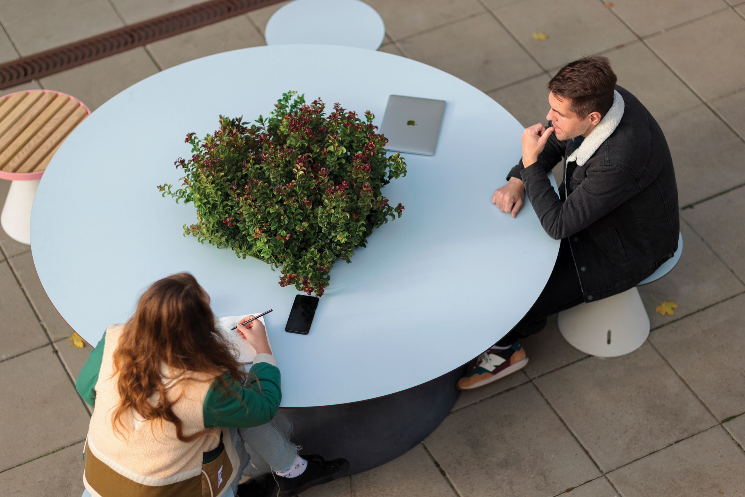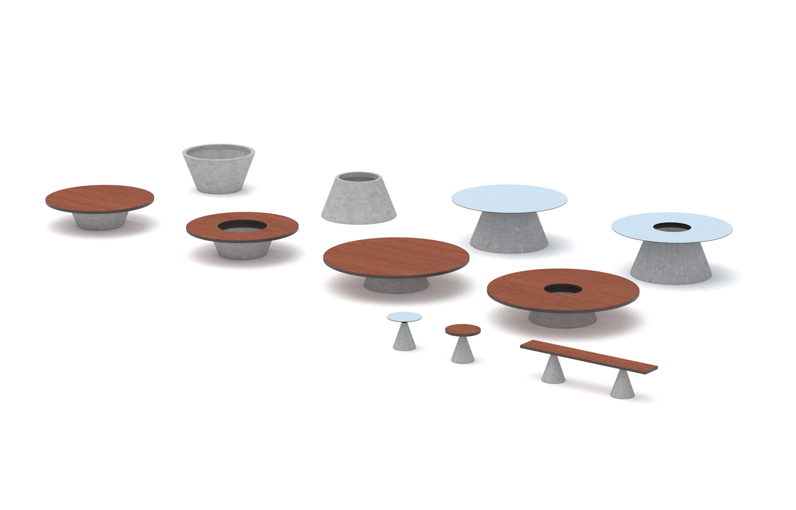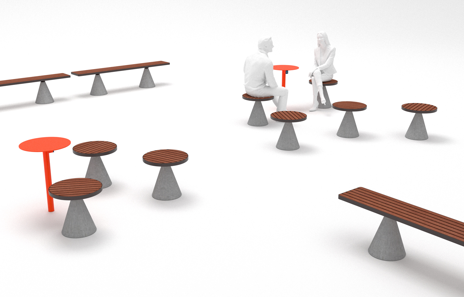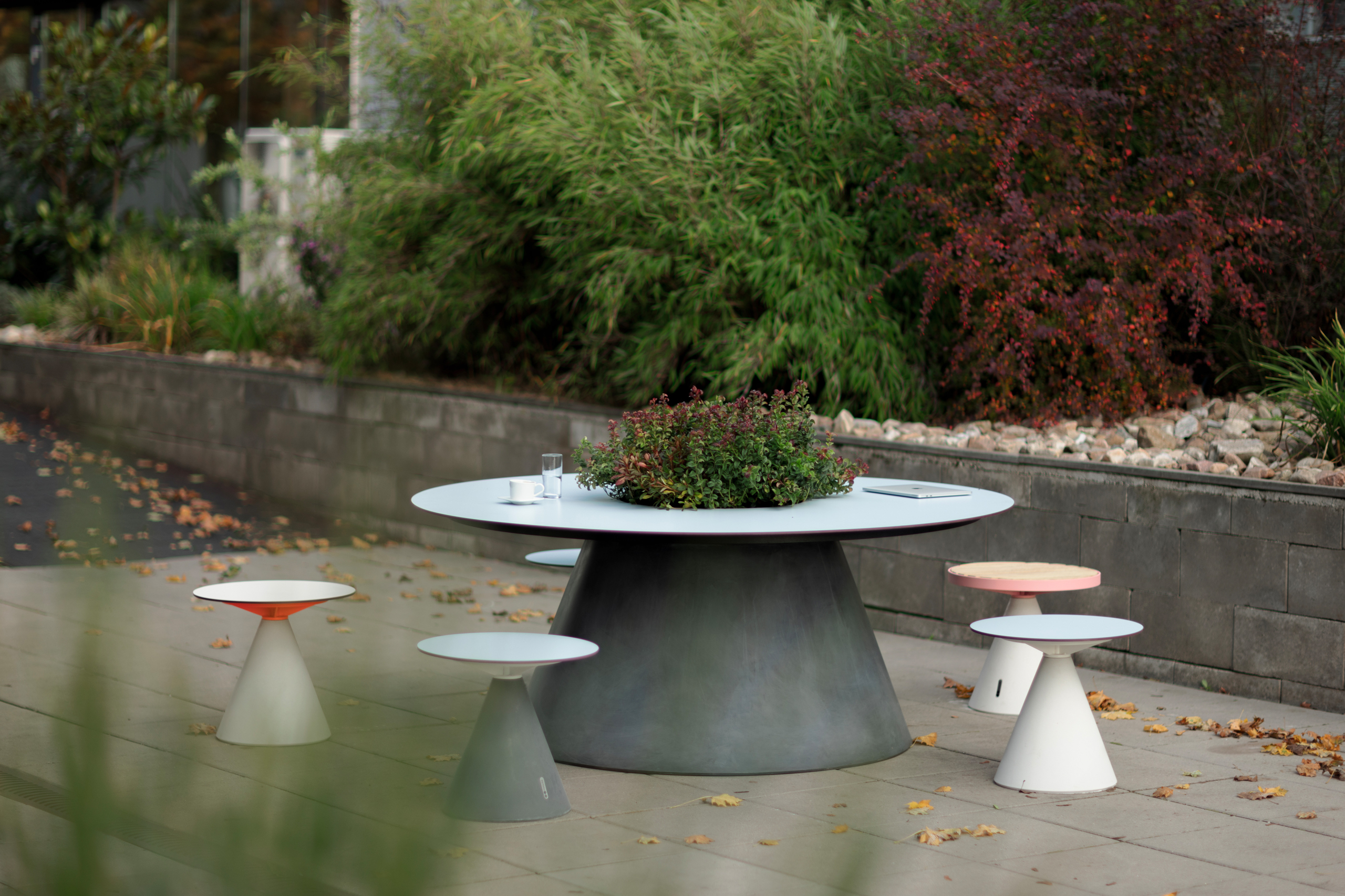 Conics kėdutės ir suolai puikiai dera su plieniniais stalais iš mūsų “Pixel” gaminių asortimento. Jei norite kūrybiškų sprendimų, rekomenduojame naudoti HPL, kuris gali būti tiekiamas su pagal užsakymą pagaminta grafika stalviršiams ir sėdynėms. Įdomus variantas yra ir stalas su vidiniu vazonu, kuriame galima pasodinti medelį ir sukurti natūralų pavėsį.