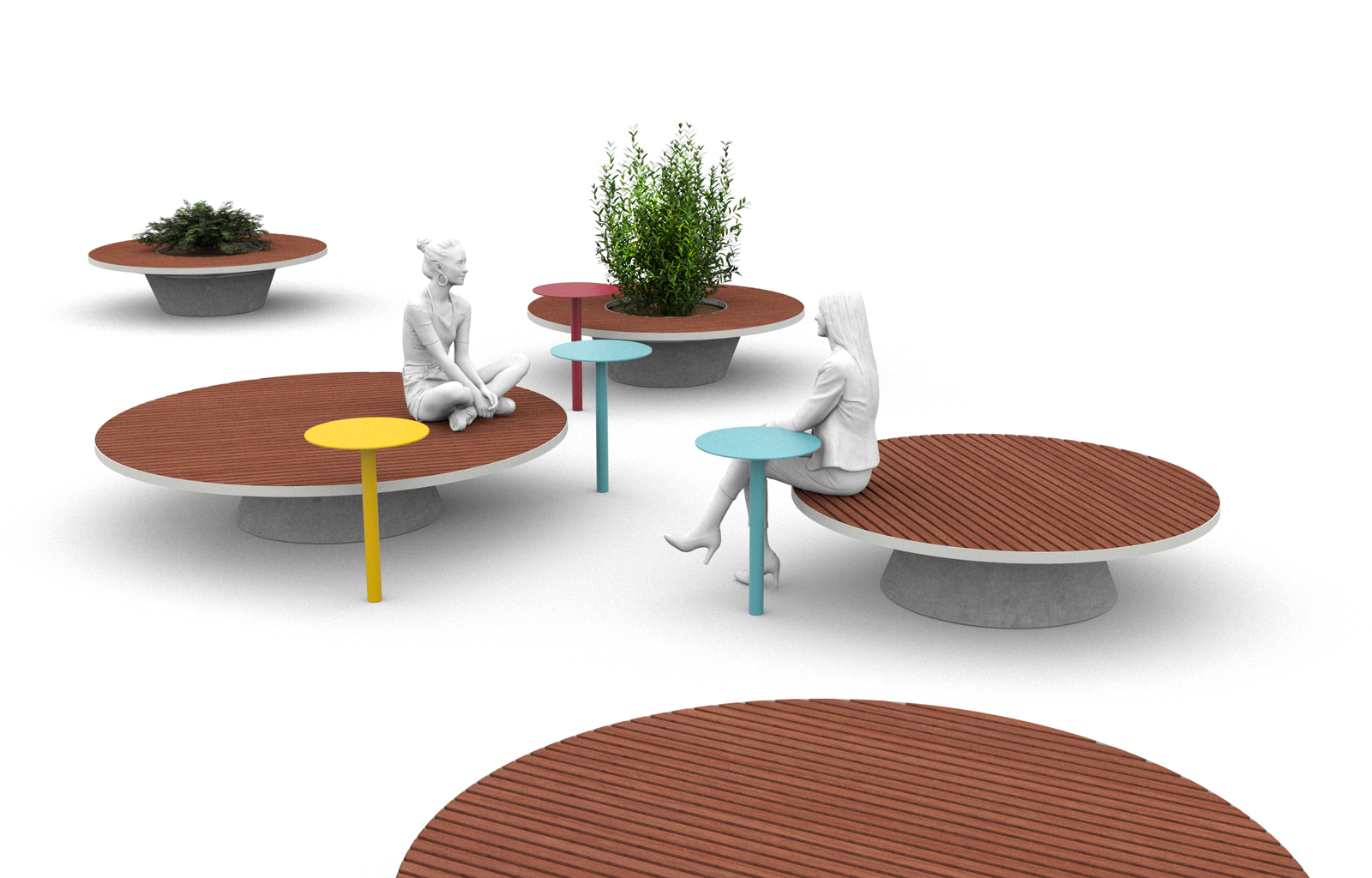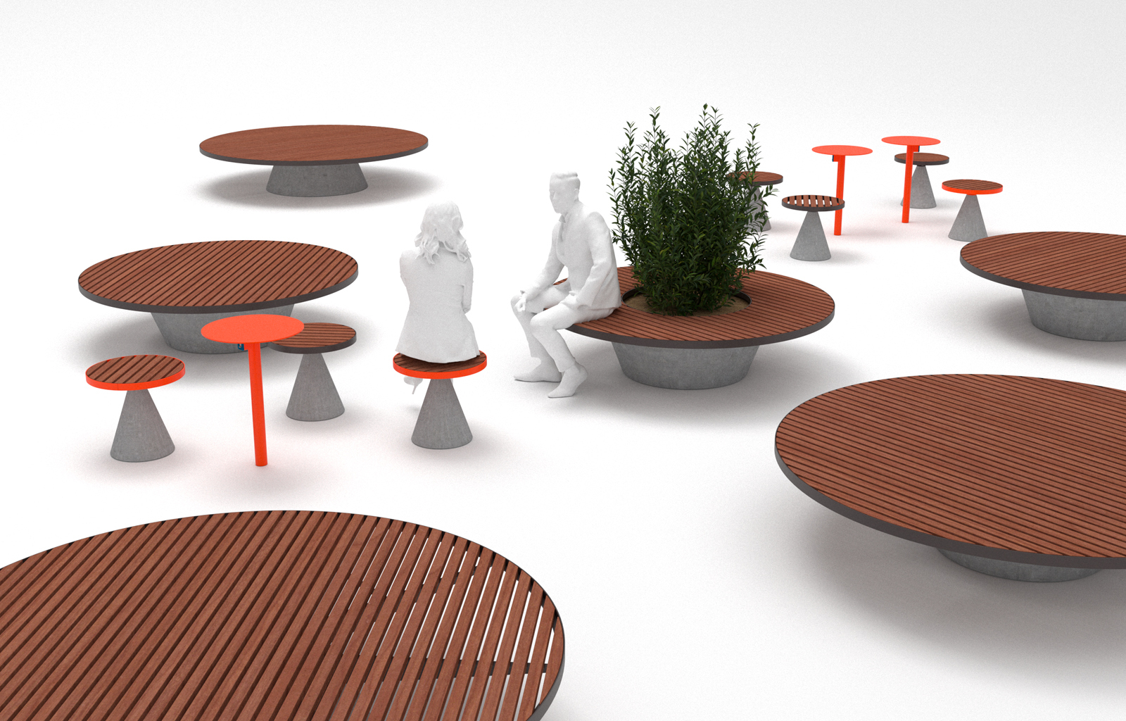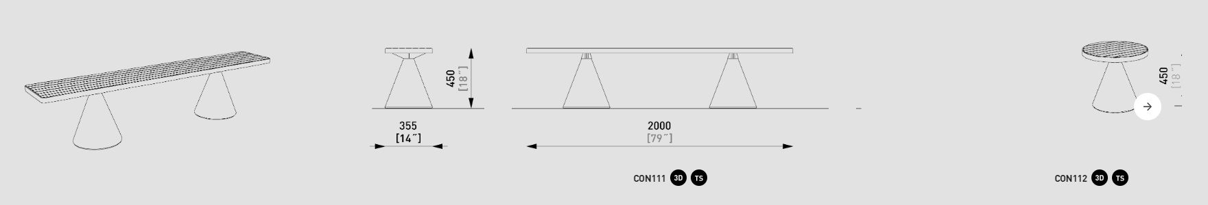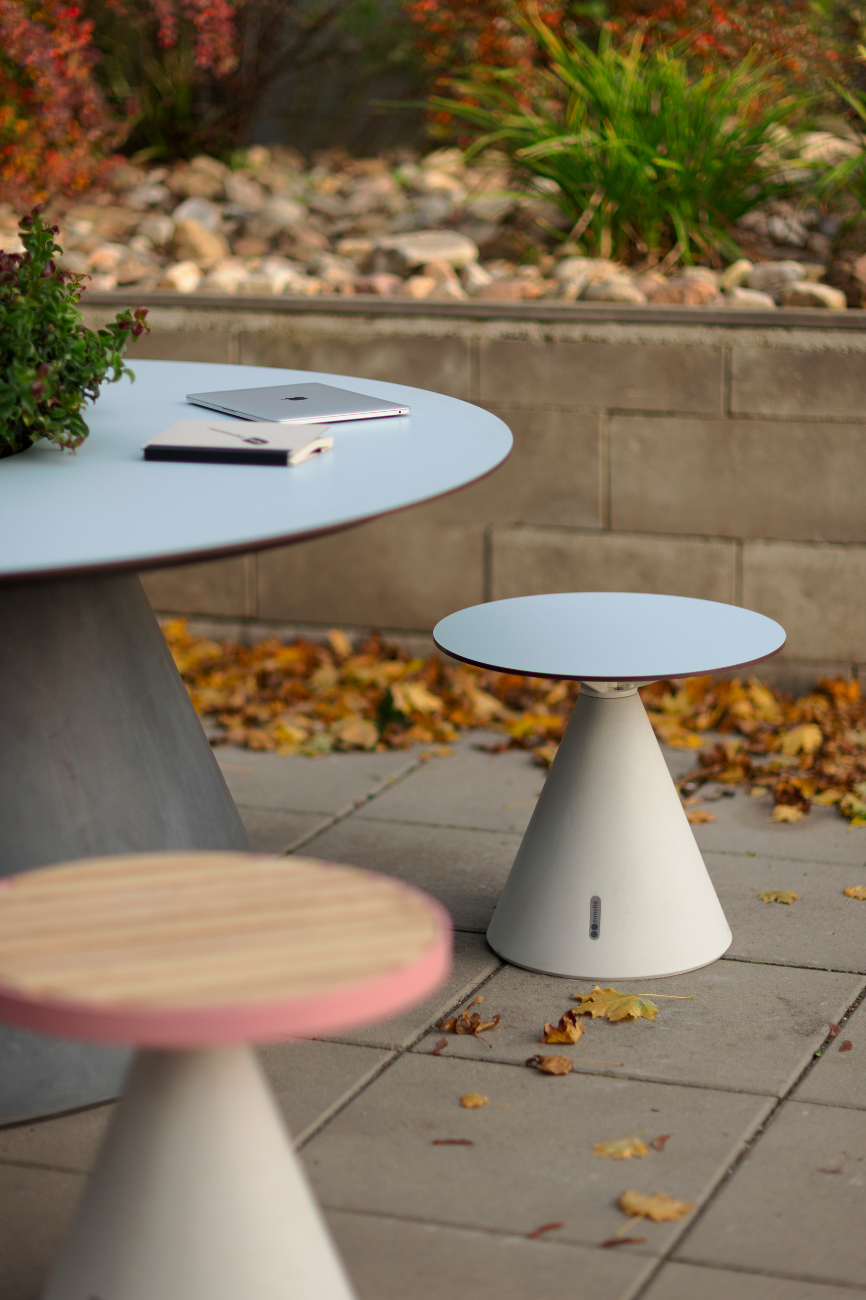 Conics kėdutės ir suolai puikiai dera su plieniniais stalais iš mūsų “Pixel” gaminių asortimento. Jei norite kūrybiškų sprendimų, rekomenduojame naudoti HPL, kuris gali būti tiekiamas su pagal užsakymą pagaminta grafika stalviršiams ir sėdynėms. Įdomus variantas yra ir stalas su vidiniu vazonu, kuriame galima pasodinti medelį ir sukurti natūralų pavėsį.