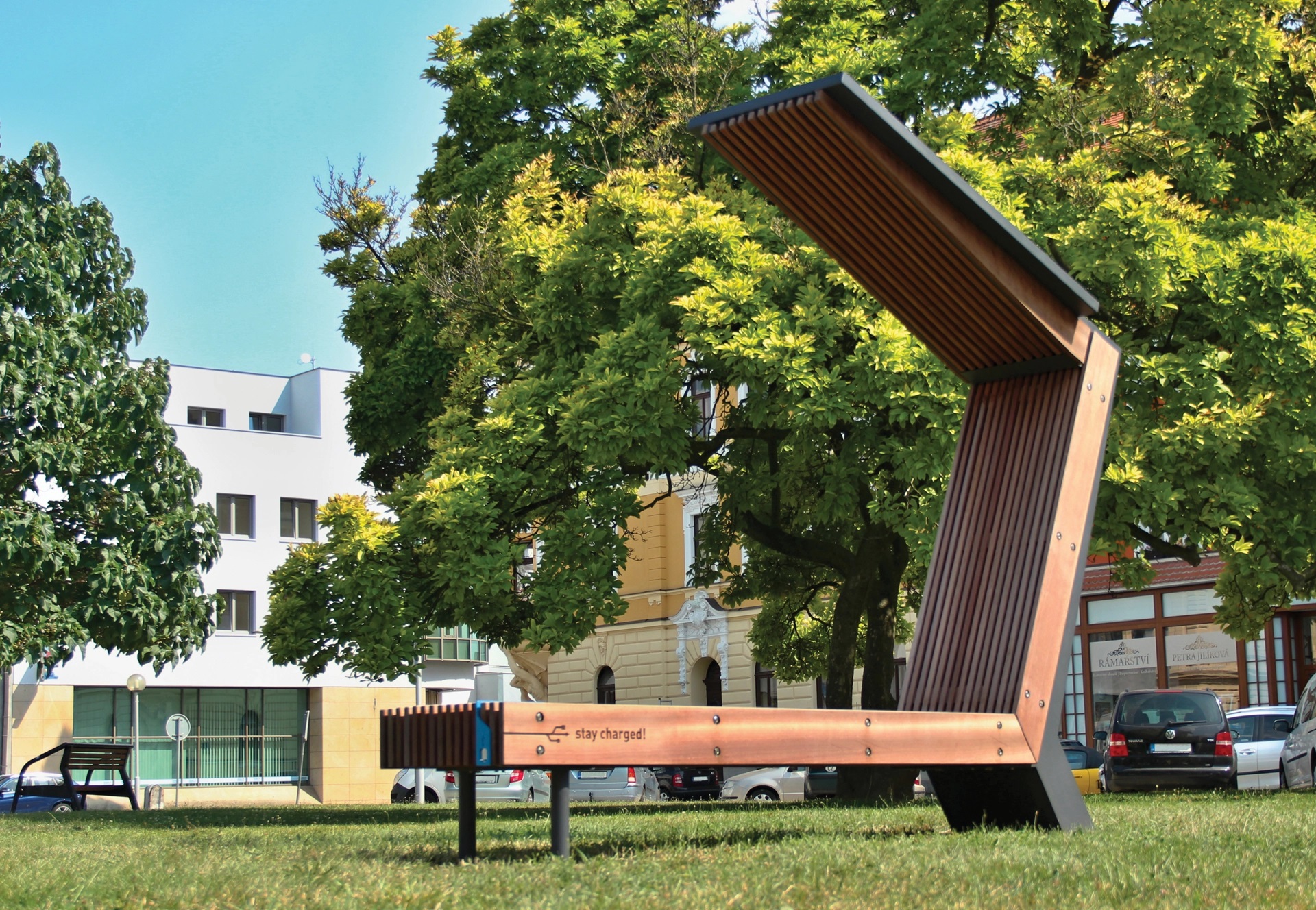 Pieturas ar USB, apgaismojumu un saules bateriju jumtu