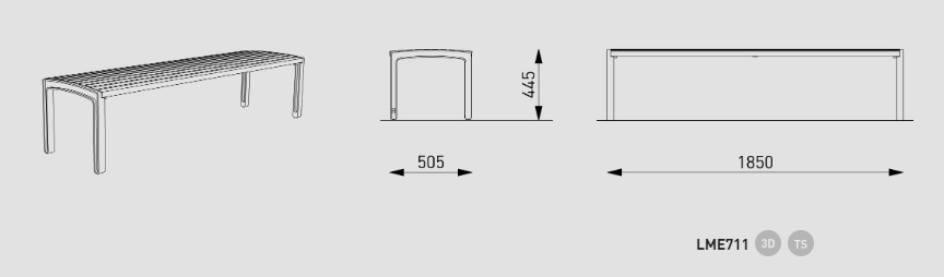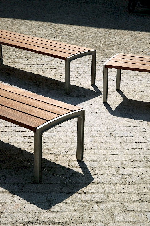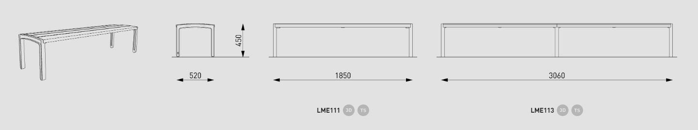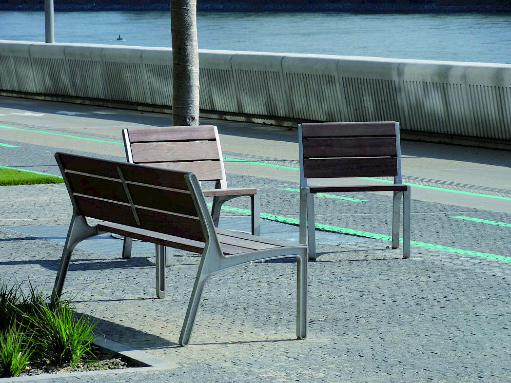 Sols bez atzveltnes: 1,8m garums, tropiska koksne, alumīnija kājas.