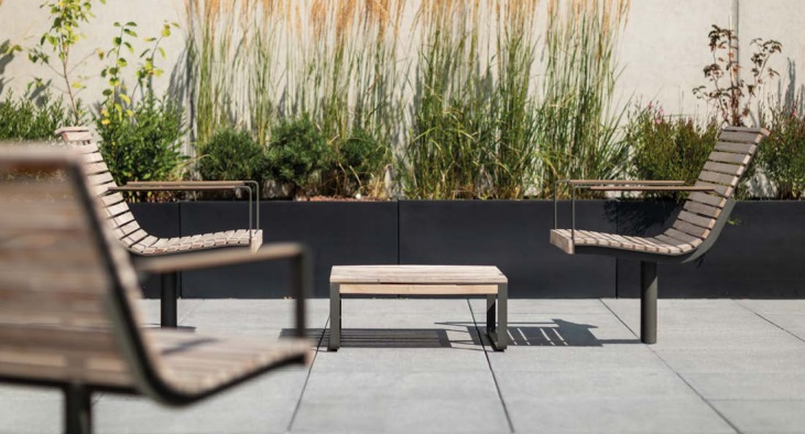 Medžiagos: plieninė konstrukcija, cinkuota ir dažyta milteliniu būdu + mediena, kurią galima padengti alyva.