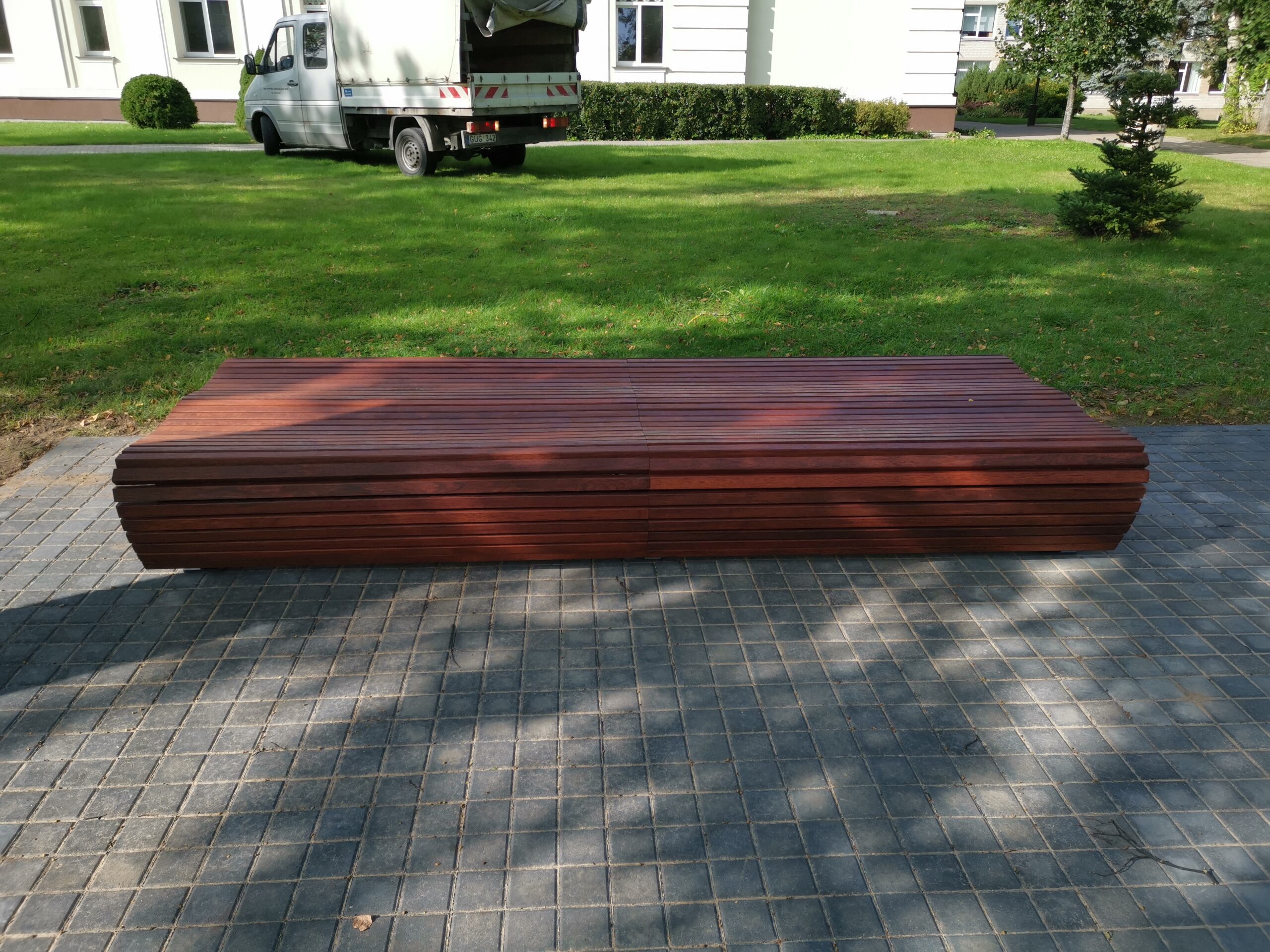 Kājas karsti cinkētas, 6mm biezuma un krāsotas pulvera metodē. Koks – tropu cietais koks. Eļļojams.
