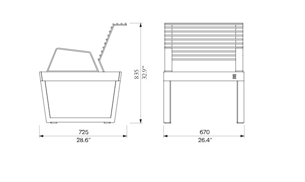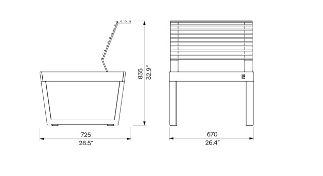 Medžiagos: plieninė konstrukcija, cinkuota ir dažyta milteliniu būdu + mediena, kurią galima padengti alyva.