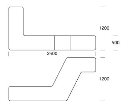 L2400 x B1200 x H1200 mm. 3-5 sėdimos vietos.